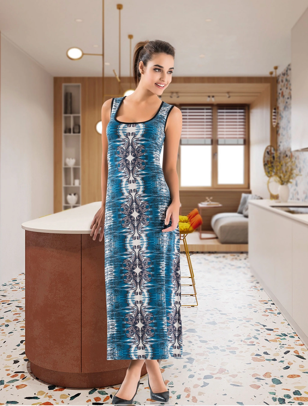 Kalın Askılı Uzun Kadın Elbise 956