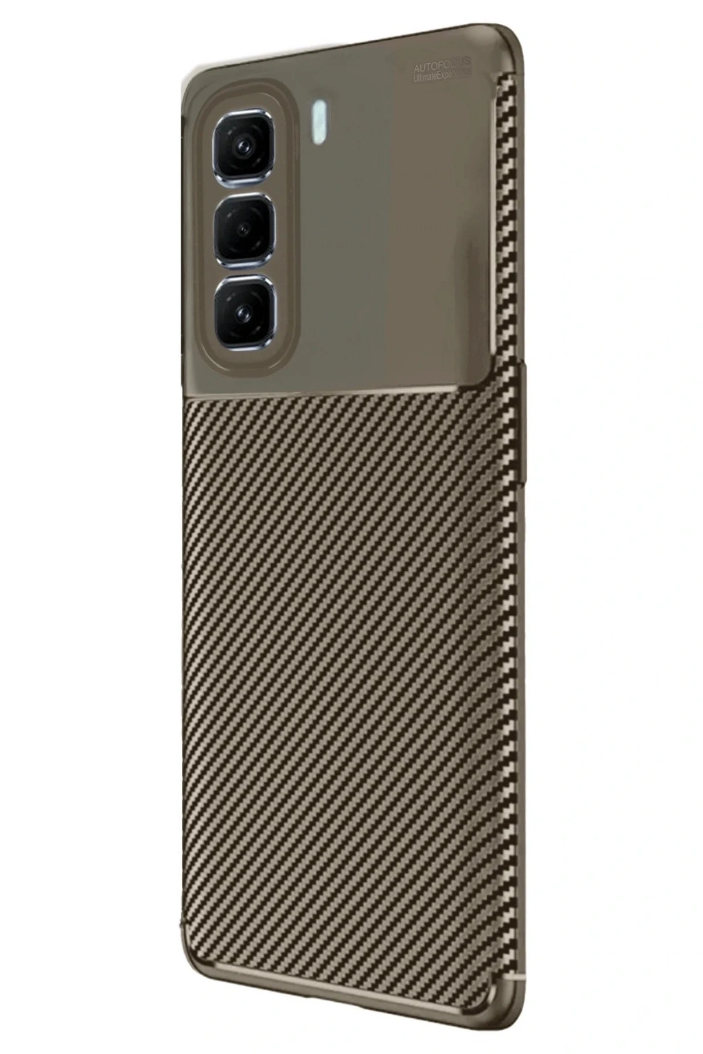 İnfinix Hot 50 4G Kılıf Auto Focus Karbon Kapak - Kahverengi