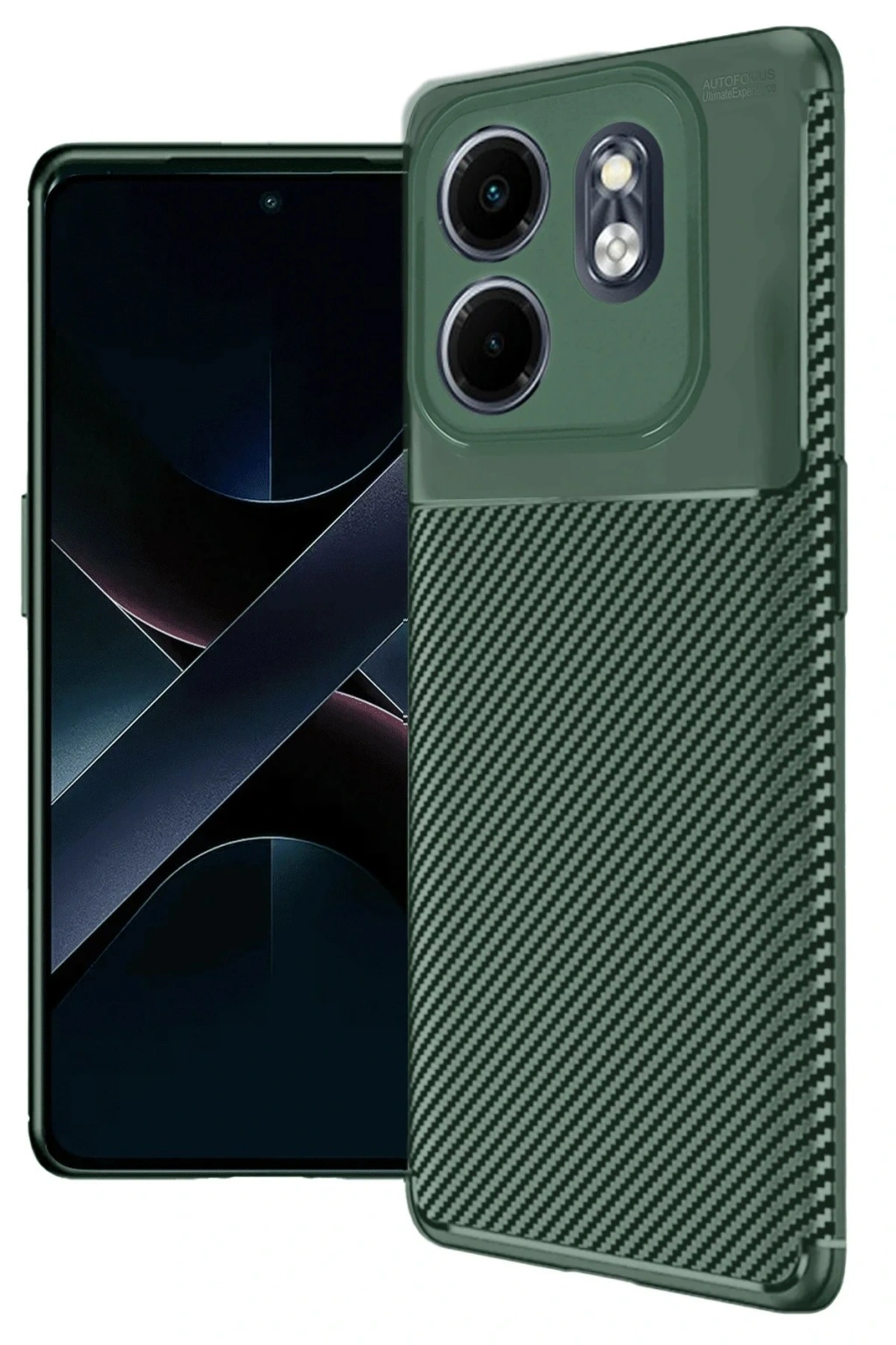 İnfinix Smart 9 Kılıf Auto Focus Karbon Kapak - Koyu Yeşil