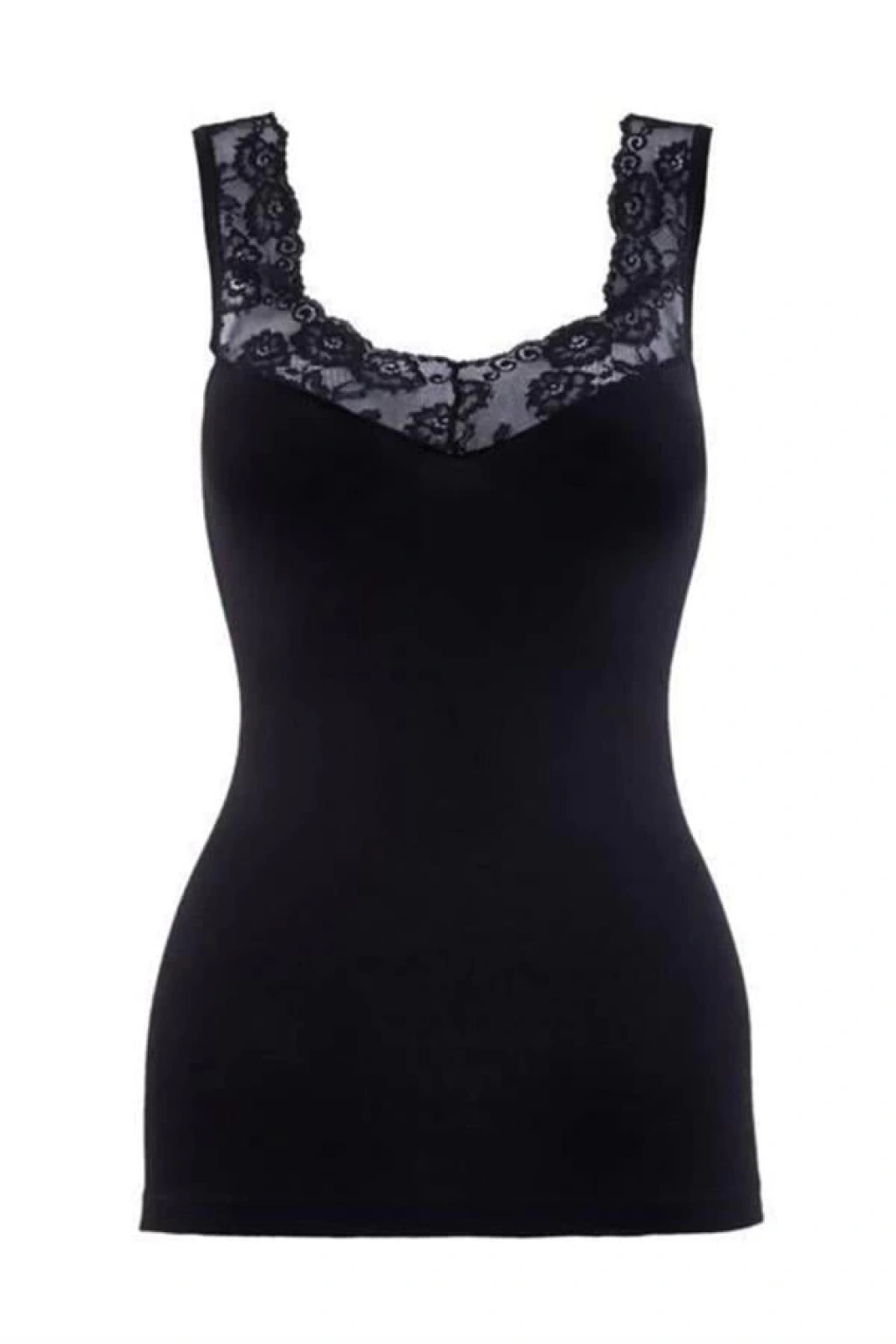 Şahinler Kalın Askılı Dantelli Siyah Atlet