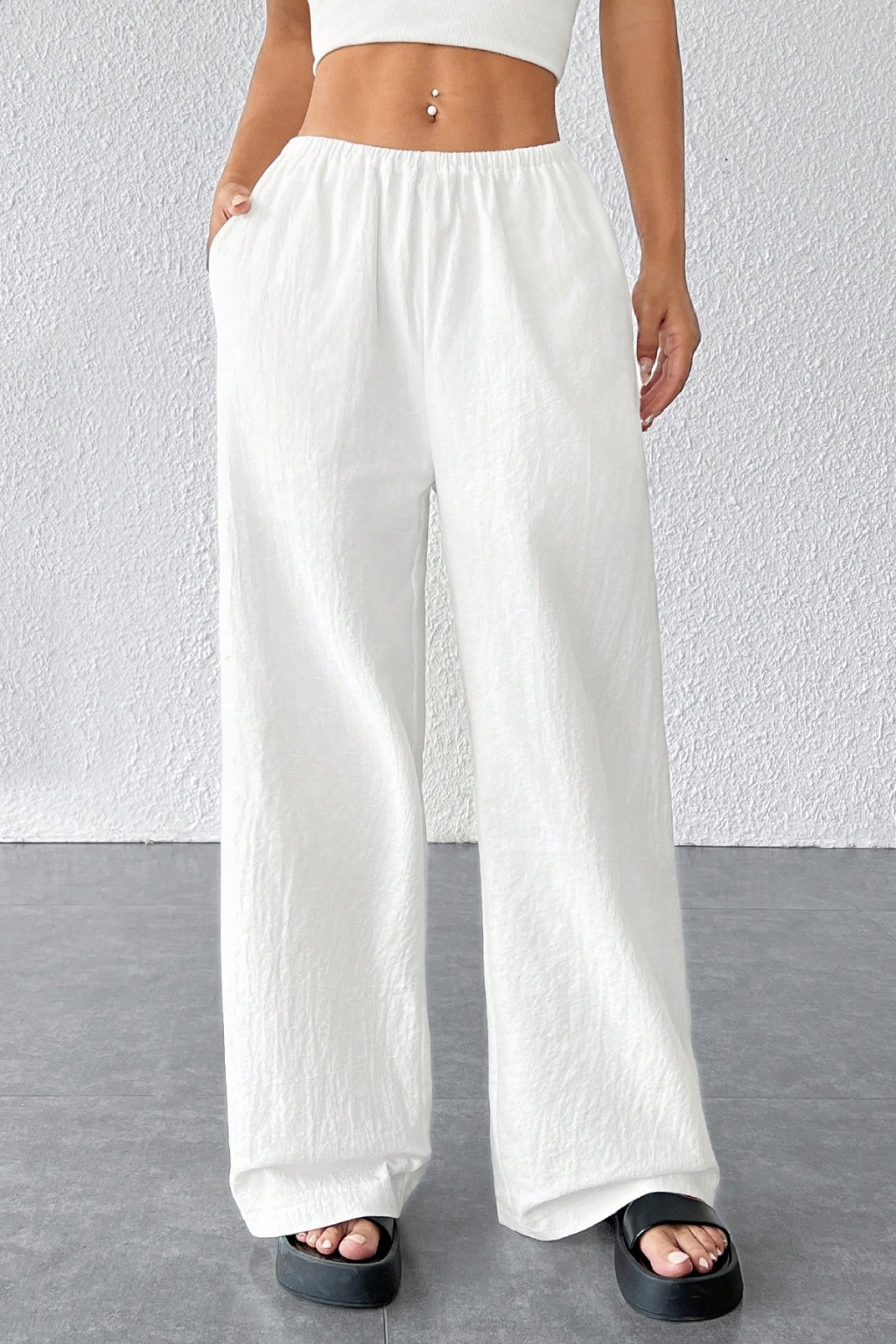 Rahat kesimi ile günlük kullanım için ideal, bol paça pantolon.Beli lastikli tasarımı sayesinde konforlu bir oturuş sunar ve vücut hatlarınıza uyum sağlar.Her mevsim rahatlıkla tercih edebileceğiniz orta kalınlıkta kumaşıyla dört mevsim konforu yaşatır.Sade ve şık görünümüyle her türlü üst giyimle kolayca kombinlenebilen düz deseni bulunur.Paça detayı ile modern ve dinamik bir siluet oluştururken, geniş paça kesimi hareket özgürlüğü tanır.Günlük kullanıma uygun casual koleksiyonun parçasıdır; hem evde hem de dışarıda rahatlıkla tercih edilebilir.Astarsız yapısıyla hafif ve nefes alabilen bir yapıya sahiptir, böylece gün boyu serin hissetmenizi sağlar.Pamuklu materyali cildinizle dosttur ve uzun süreli kullanımda bile formunu korur.Uzun boyu sayesinde bacakları olduğundan daha uzun gösterirken, normal bel yüksekliği ile zarif bir duruş sergiler.Bürümcük dokuma tipiyle yumuşak dokusuyla ayaklarınızın altında hoş bir his bırakır.Şıklık ve rahatlığı bir arada sunan kadın beyaz bol kesim geniş paçalı çift cepli dökümlü pantolon, günlük kullanım ve özel kombinler için ideal bir seçimdir.Hafif ve nefes alabilen dokulu kumaşı sayesinde yaz aylarında serinlik ve konfor sağlar.Salaş ve dökümlü duruşuyla modern bir tarz oluştururken, cepli tasarımıyla da pratik kullanım sunar.Lastikli beli sayesinde vücuda uyum sağlayarak rahat hareket imkânı verir.Günlük gezilerde, tatilde ya da ofis şıklığında kolayca kombinlenebilen bu kadın pantolon, beyaz rengiyle her tarza uyum sağlar.Spor ayakkabı, sandalet ya da topuklu ayakkabı ile rahatça tercih edebilirsiniz.Gardırobunuzun vazgeçilmez parçası olacak bu model, hem şık hem de konforlu giyinmek isteyenler için idealdir.Renk: BeyazModel: Bol kesim, geniş paçaDetay: Çift cepli, dökümlü dokulu kumaşBel: Lastikli, rahat kullanımTarz: Günlük, yazlık, salaş, modern]]>