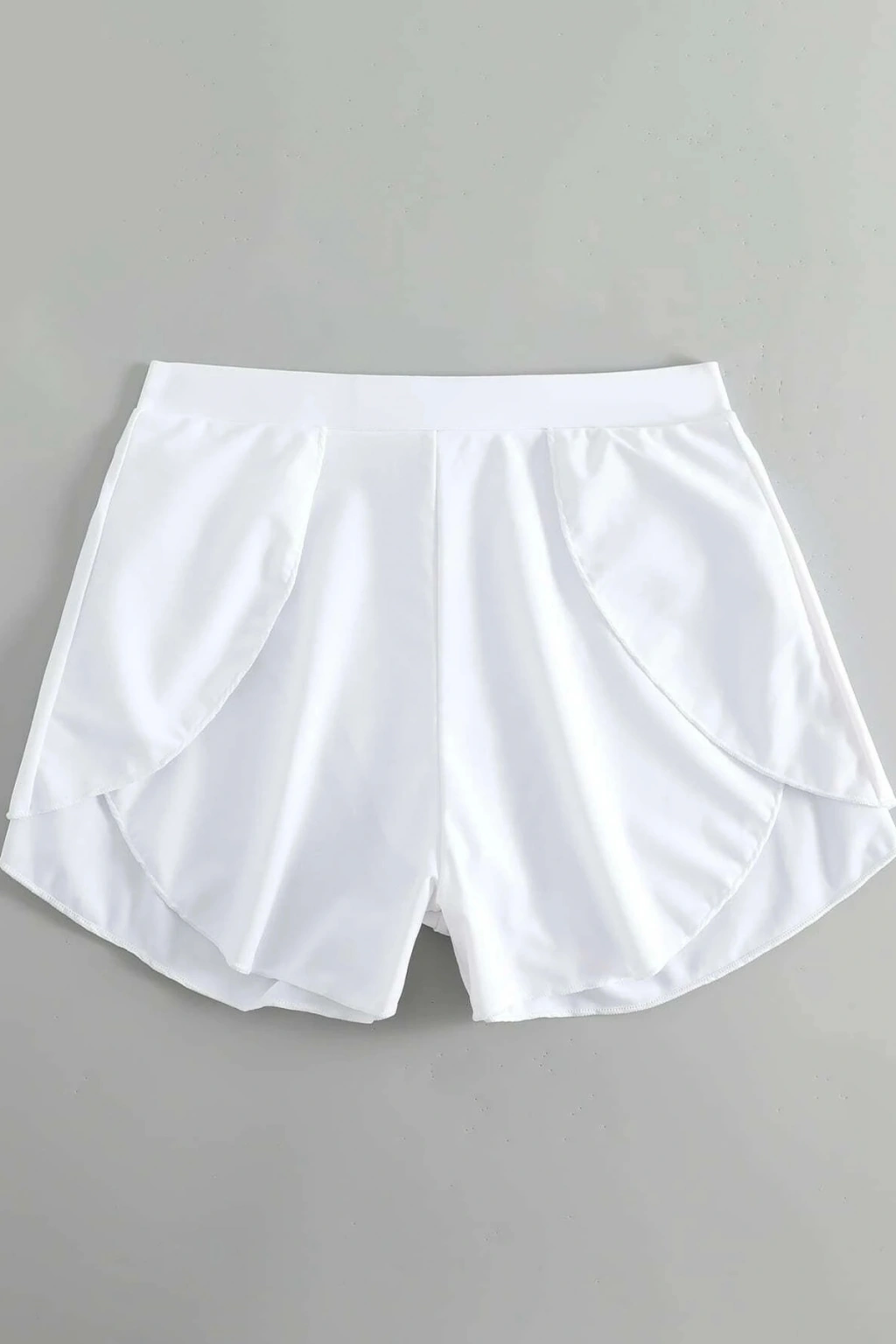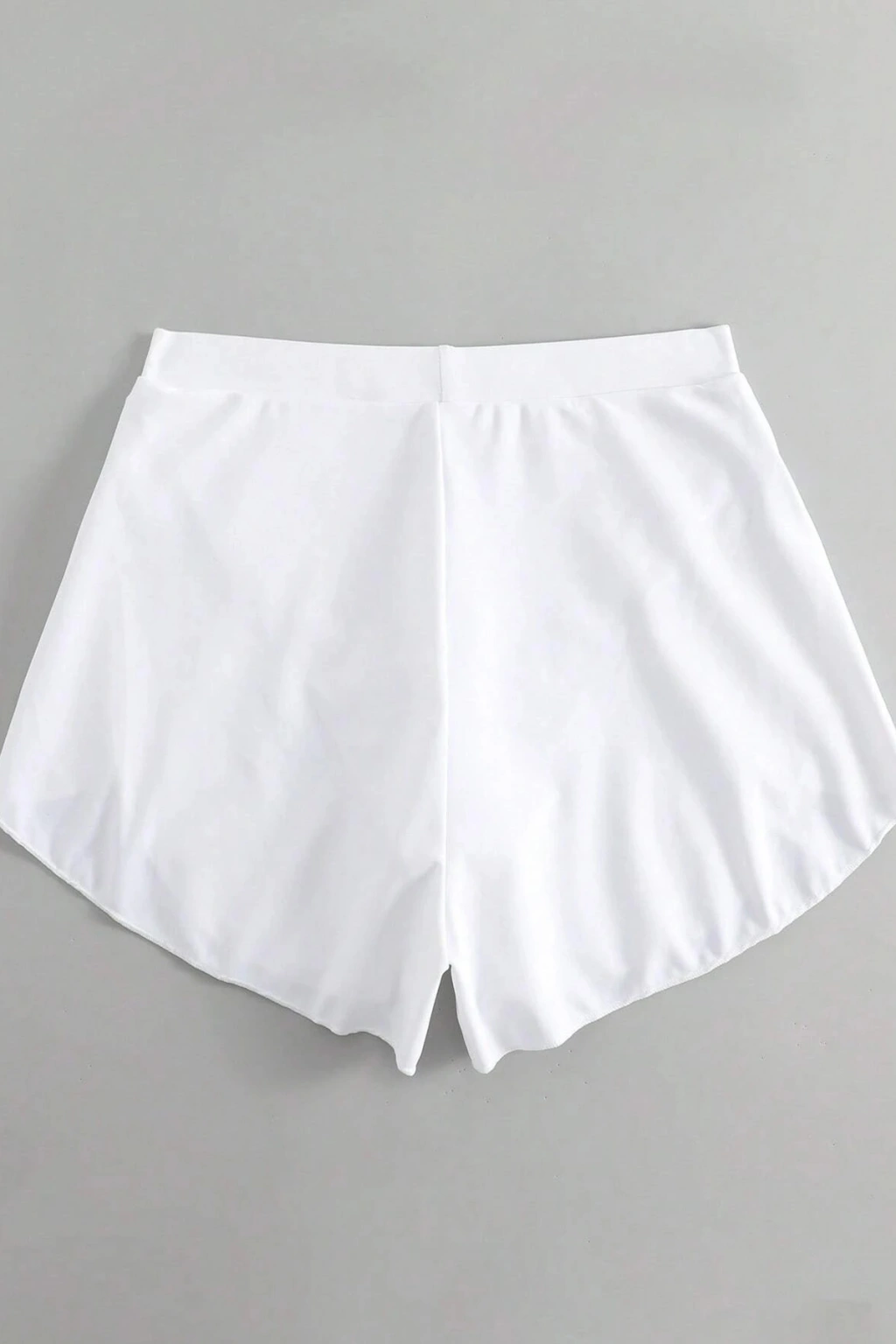 Kadın Beyaz Yırtmaçlı Etek Görünümlü Şık Deniz Şortu