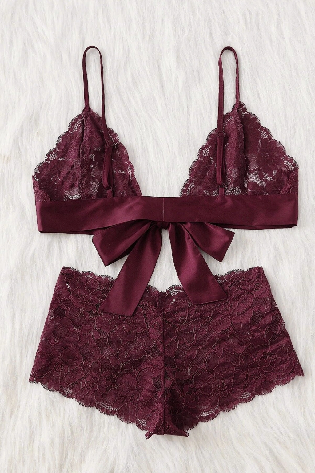 Kadın Bordo Dantelli & Kurdelalı Sütyen Külot Takımı