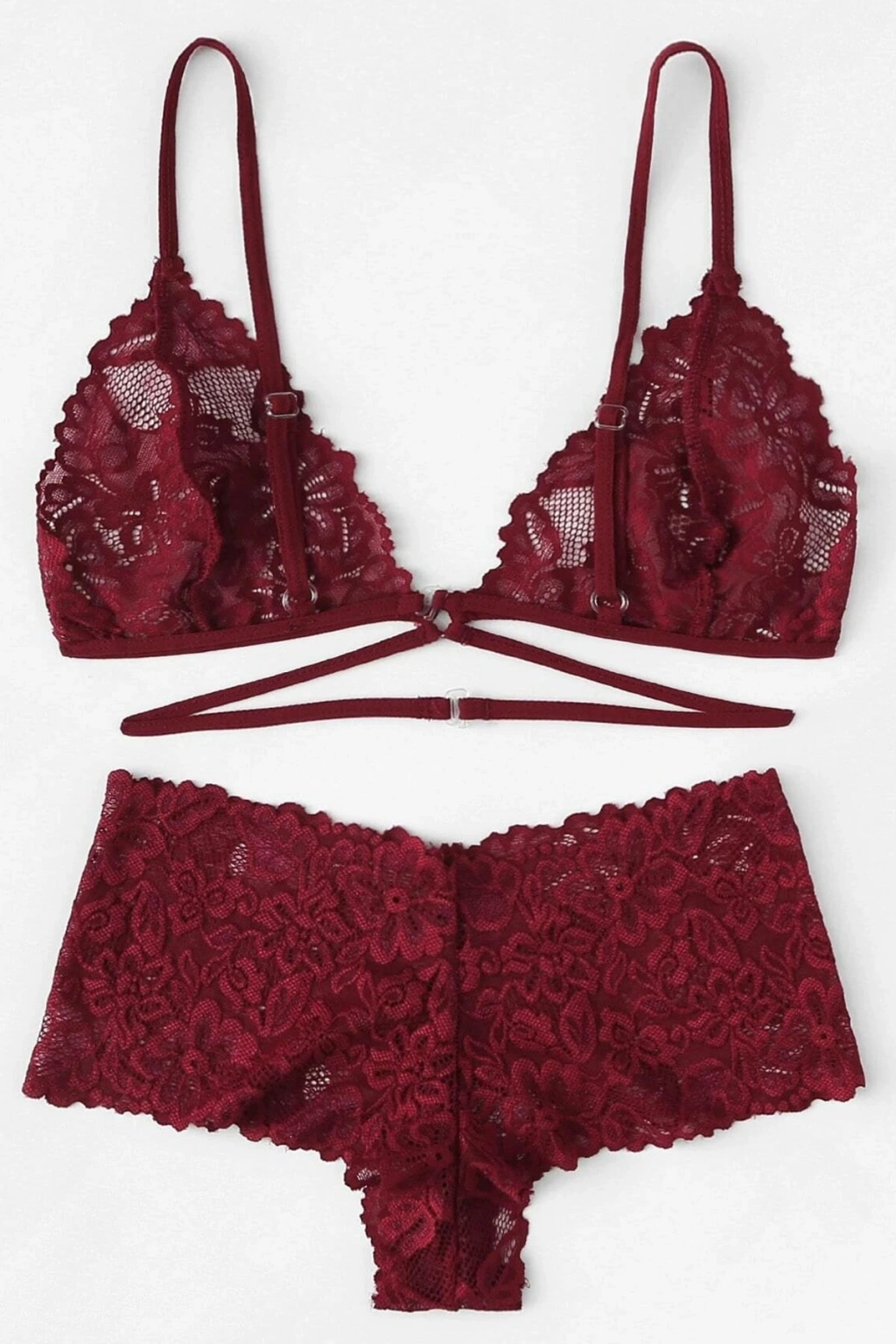 Kadın Bordo Dantel Bralet Şort Takımı – Asil Ve Sofistike İç Giyim