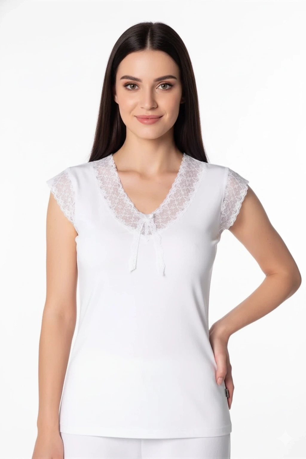 Kadın Dantelli Taşlı Yarım Kollu Atlet B636