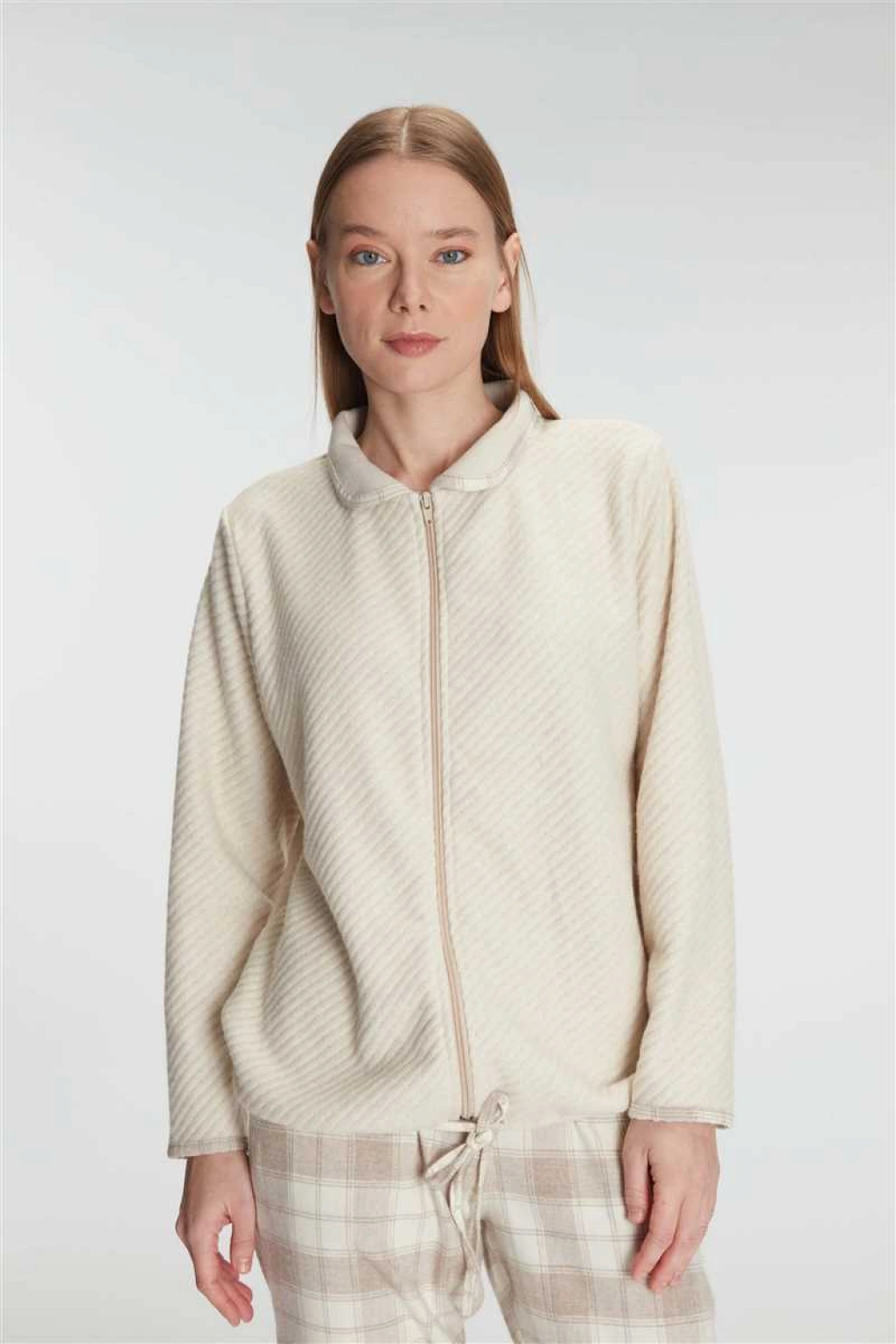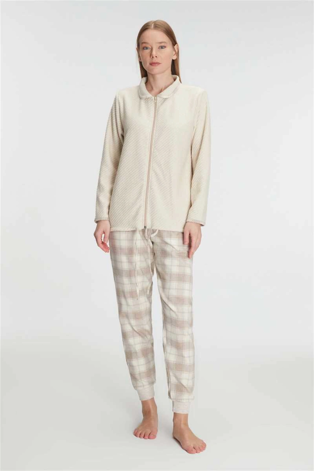 Kadın Fermuarlı Uzun Kollu Viskon & Pamuklu Pijama Takımı – Yumuşacık Dokulu, Ev Şıklığı