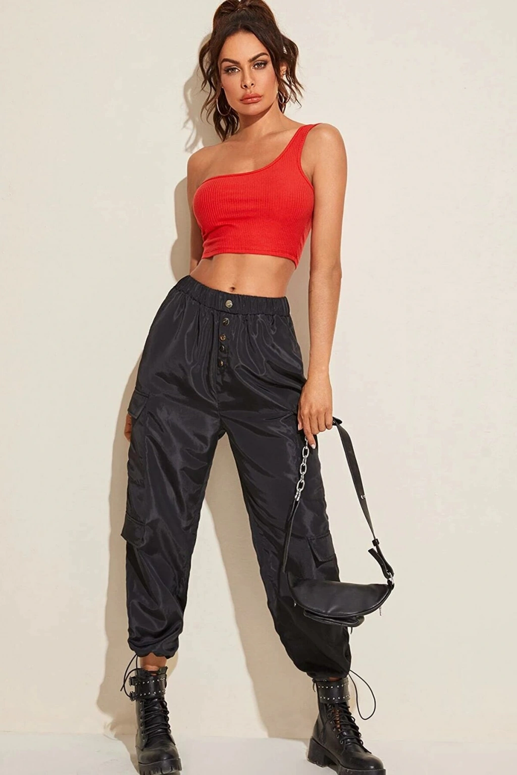 Kadın Kırmızı Tek Omuz Crop Büstiyer