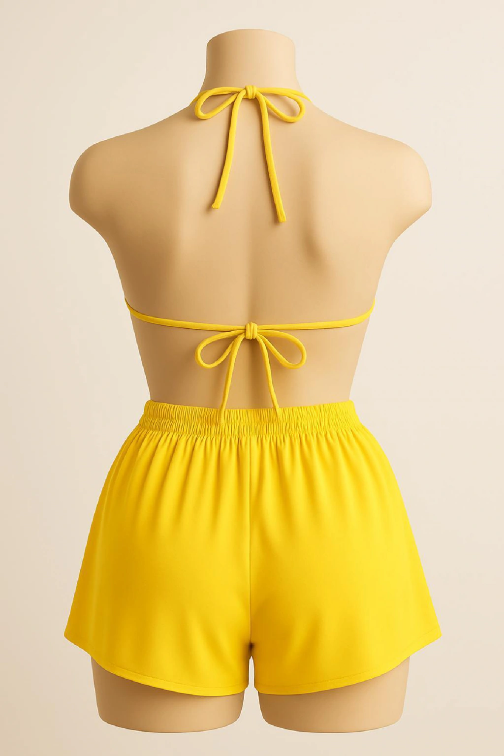 Zarif tasarımıyla dikkat çeken bu bikini takımı, plajda şıklığınızı ön plana çıkarır.İki parçadan oluşan set; üst parça olarak bralet bikini üstü ve alt parça olarak şortlu bikini altını içerir.Mikro likralı interlok dokuma tipi sayesinde esneklik ve konfor sunar, hareket özgürlüğünüzü kısıtlamaz.Kolsuz üst kısmı ile yaz sıcağında serinlik sağlarken, boyundan bağlama detayları feminen bir görünüm kazandırır.Kutusuz ambalajıyla pratik kullanım imkanı sunar; hemen giyip çıkartabilirsiniz.Micro materyali cildinizle uyumlu olup, uzun süreli kullanımlarda bile rahatlık sağlar.Bralette silueti modern ve trend bir görünüm sunarken, üçgen kesimiyle zarafeti korur.Tekli paket içeriğiyle ihtiyacınız olan her şey tek seferde elinizde olur. Arka açıklığı sayesinde rahat bir oturuşa sahip olmanızı sağlar ve güneşlenme sırasında maksimum konfor sunar. 2 in 1 özelliği ile hem üst hem de alt parça olarak kullanılabilme avantajına sahiptir; böylece zamandan tasarruf edersiniz. Cool & comfort persona'ya hitap ederek plaj modasının vazgeçilmez parçası haline gelir. Bağlama veya bağcık kapama şekliyle kişisel zevkinize göre ayarlama yapabilirsiniz. Dokuma kumaşı dayanıklılığı arttırarak ürün ömrünü uzatır. Yetişkin yaş grubuna uygun olarak üretilmiştir; herkes için idealdir. Türkiye menşeli olması gurur verici bir tercih olup yerel üretim kalitesini yansıtır. Ek özellik bulunmaması nedeniyle minimalist tasarım anlayışını benimserken aynı zamanda fonksiyonellikten ödün vermez. Alt siluet olarak şortlu modeliyle hem rahatlık hem de stil sahibi bir görünüm sunar. Şortlu/etekli alt kalıbı sayesinde farklı kombinasyonlar oluşturmanıza olanak tanır.]]>