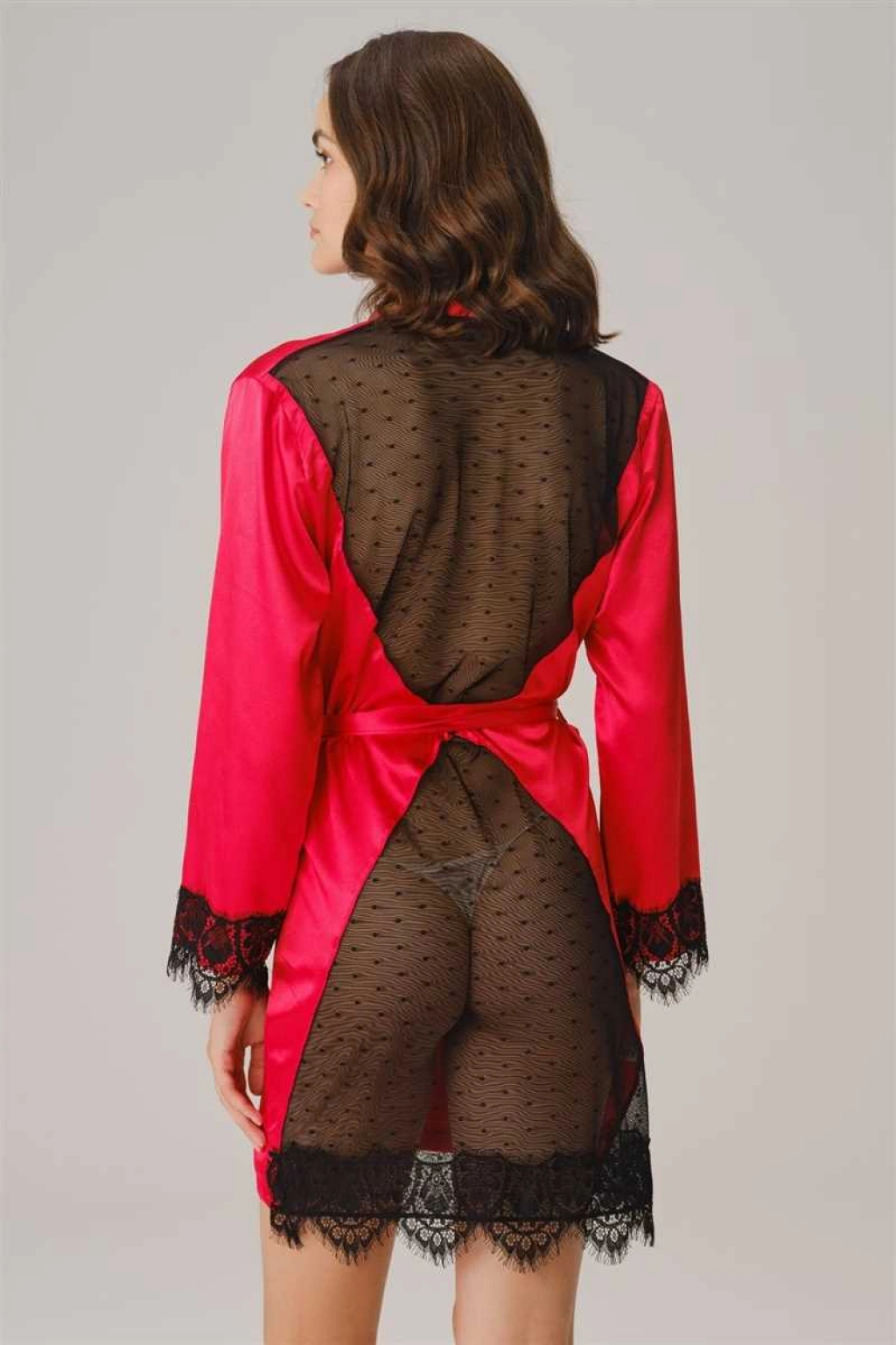 Kısa Ad:Kadın Saten Sırt Detaylı Dantelli Sabahlık ve String Takım (5738)