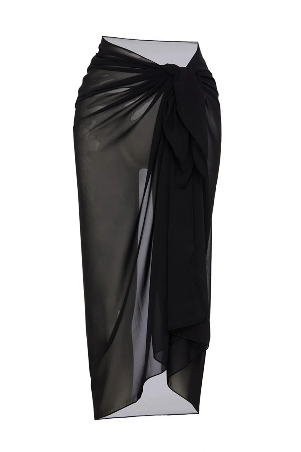 Kadın Siyah Transparan Belden Bağlamalı Pareo