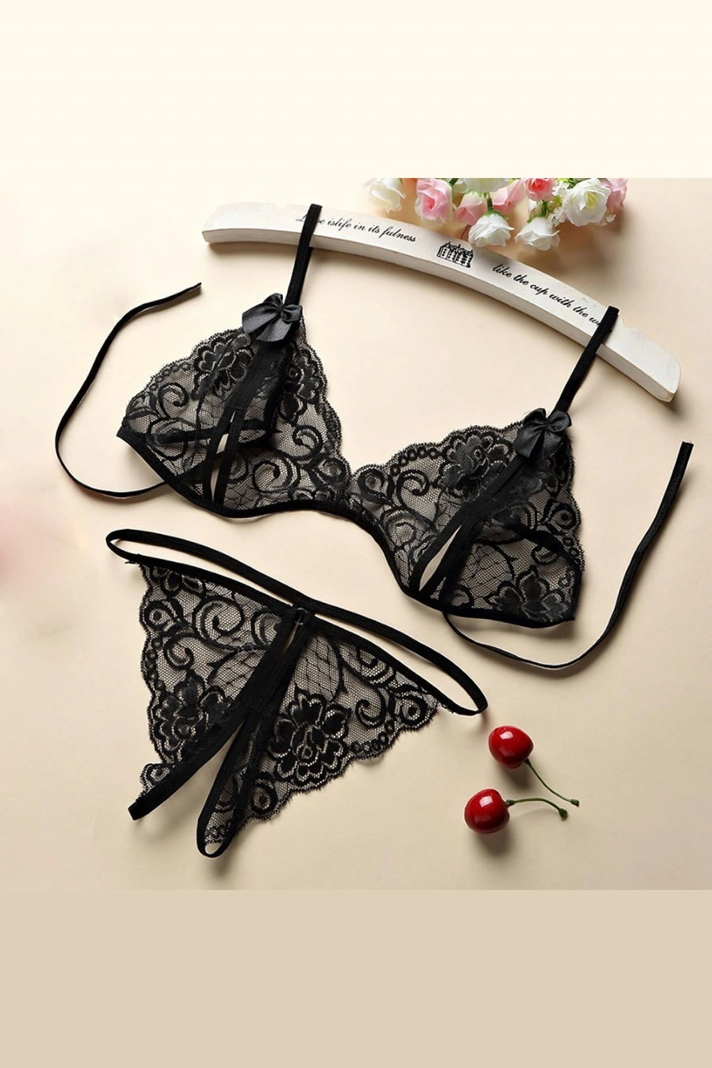 Kadın Siyah Dantelli Sütyen Külot Takımı