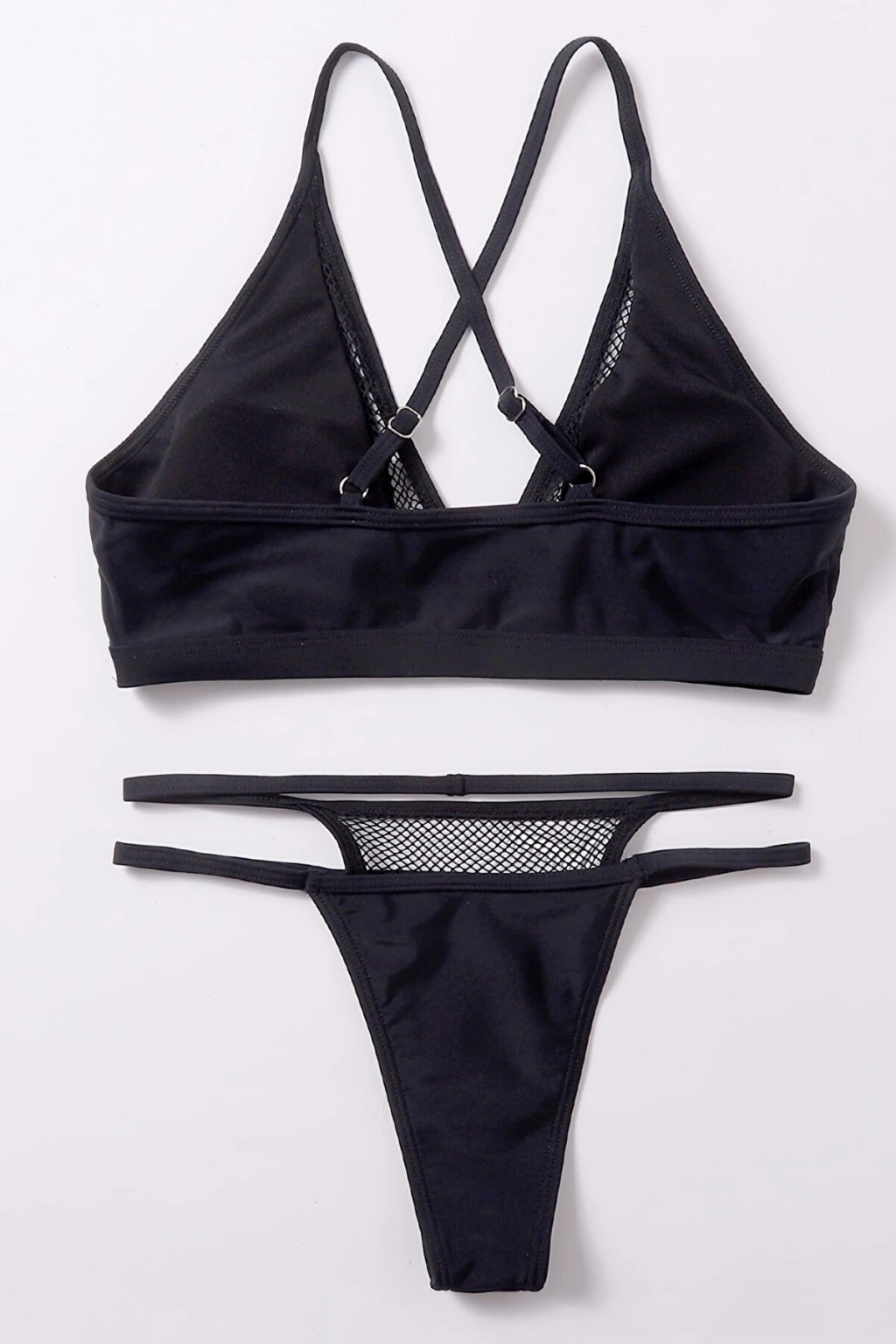 Kadın Siyah File Detaylı Iç Çamaşır Takımı
