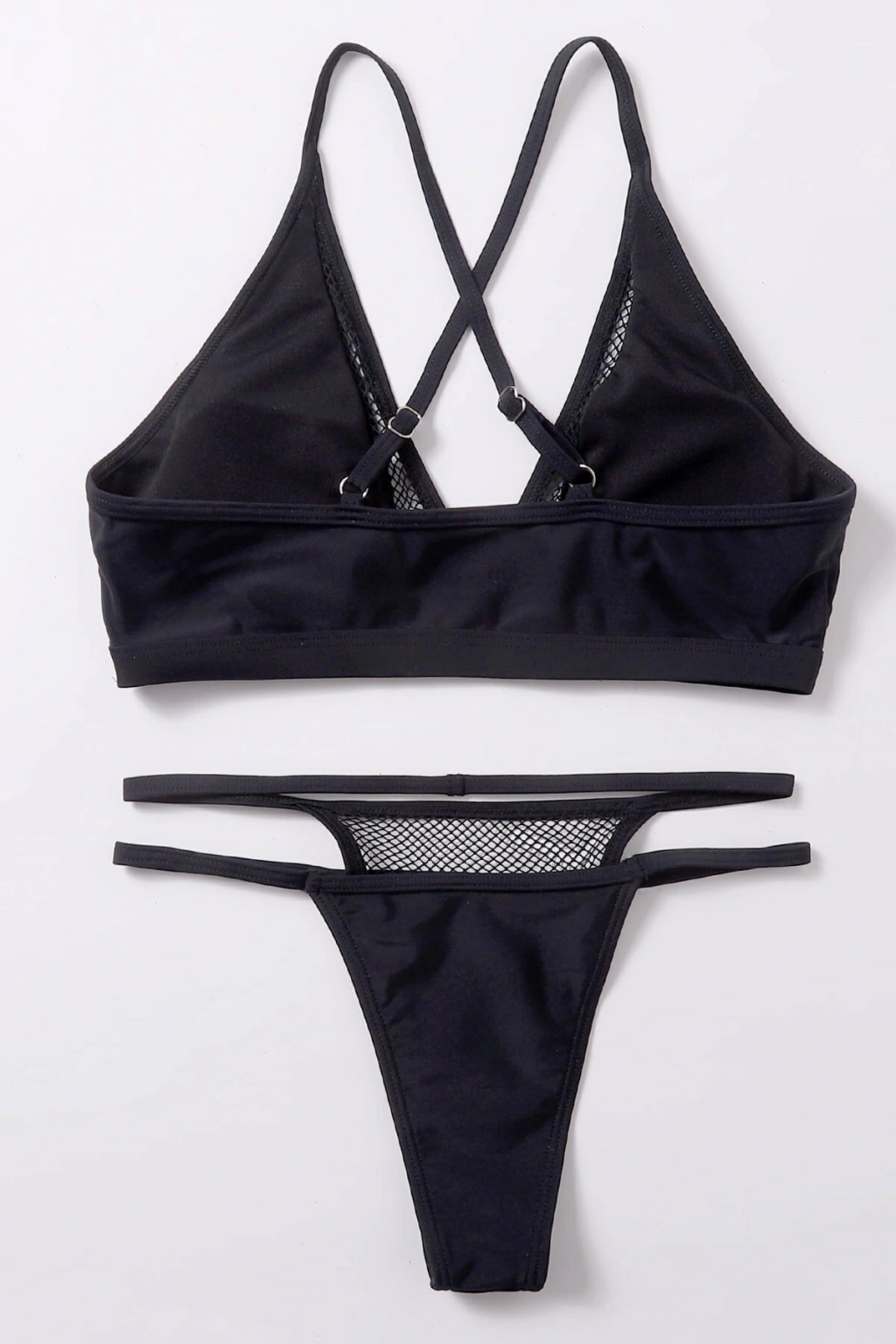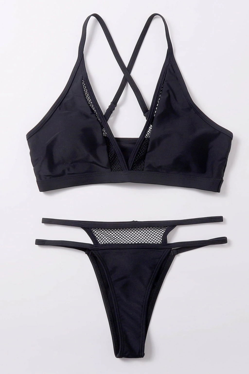 Kadın Siyah File Detaylı Özel Bikini Takımı