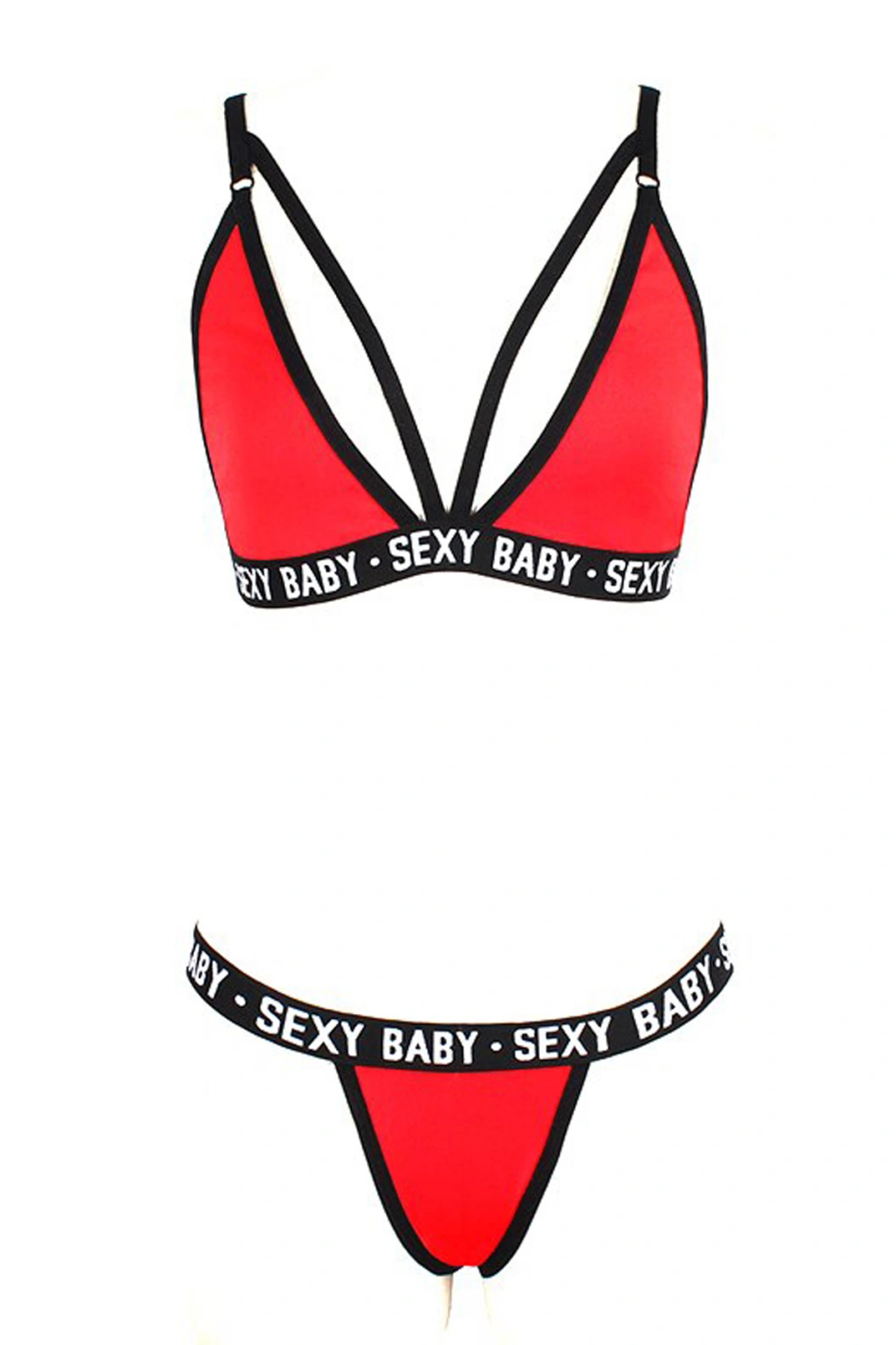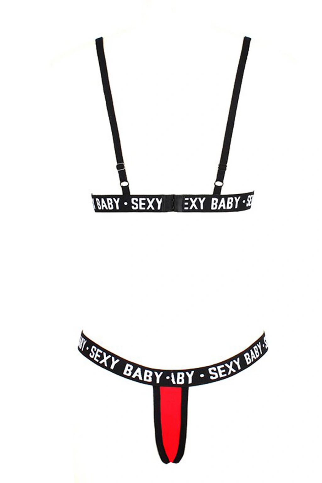 Kadın Siyah Yazı Detaylı Ipli Sütyen Takımı