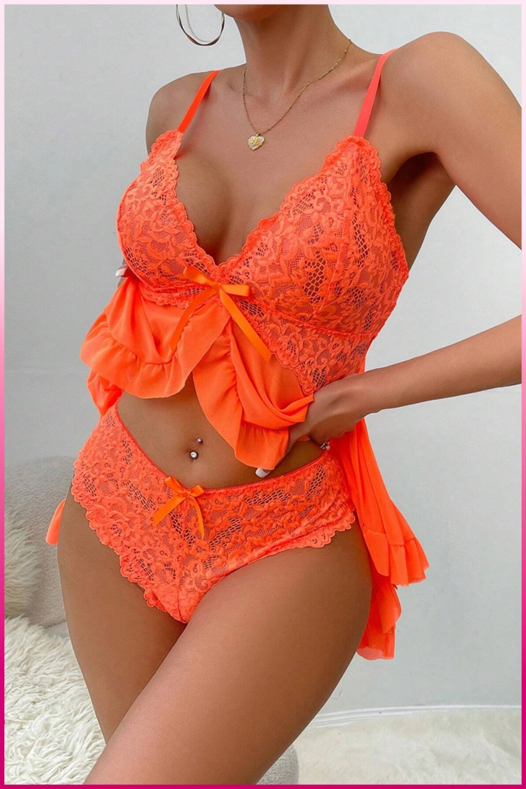 Bel Kısmı Fiyonklu Dantel İşlemeli Mini Fantezi Gecelik