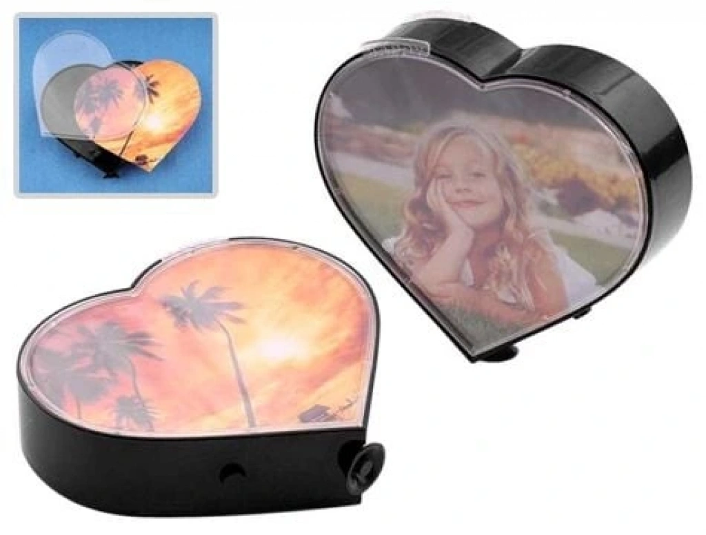 Sihirli Dönen Kalpli Fotoğraf Çerçevesi !Standart çerçevelerden sıkılanlar için idealdir. İki fotoğraf kapasitesi ile masanızda resimleri sergileme fırsatı bulursunuz.Bu fotoğraf çerçevesi toplam 2 adet resim kapasitelidir. On/Off butonu sayesinde istediğiniz zaman kendi etrafında dönmesini sağlayabilirsiniz.Özellikler: