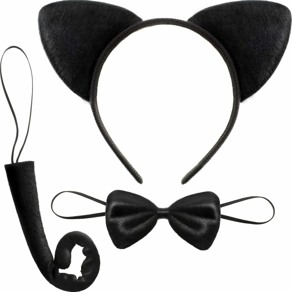 Kedi Kostüm Taç Kuyruk Papyon Seti 1 Adet (4172)