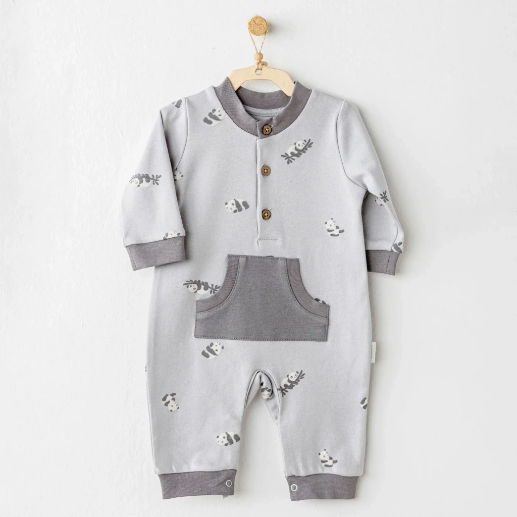 Style Natural Fermuarlı Bebe Tulum 15115 Gri