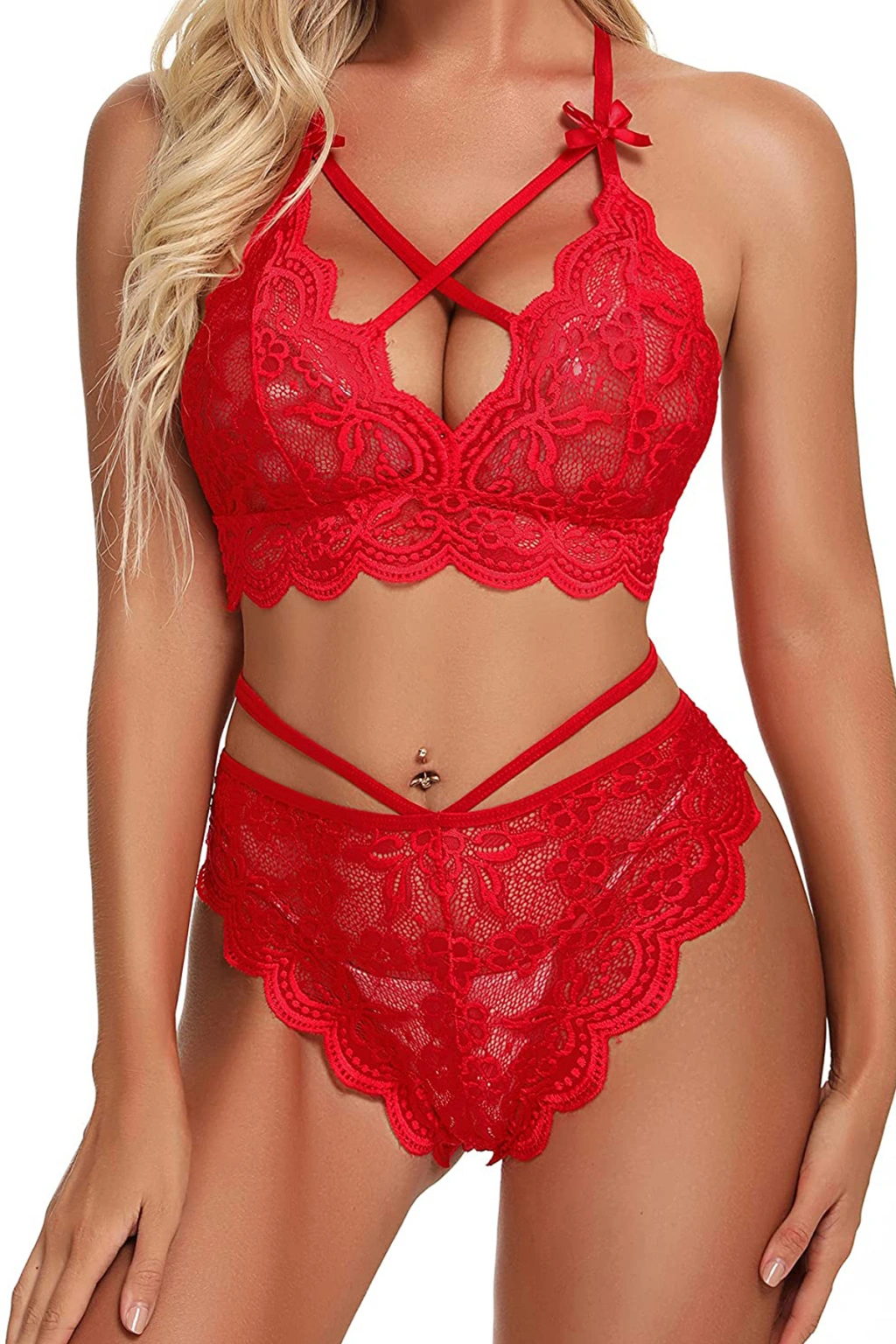 Kırmızı Çapraz Ip Detaylı Şık Sütyen Külot Takım