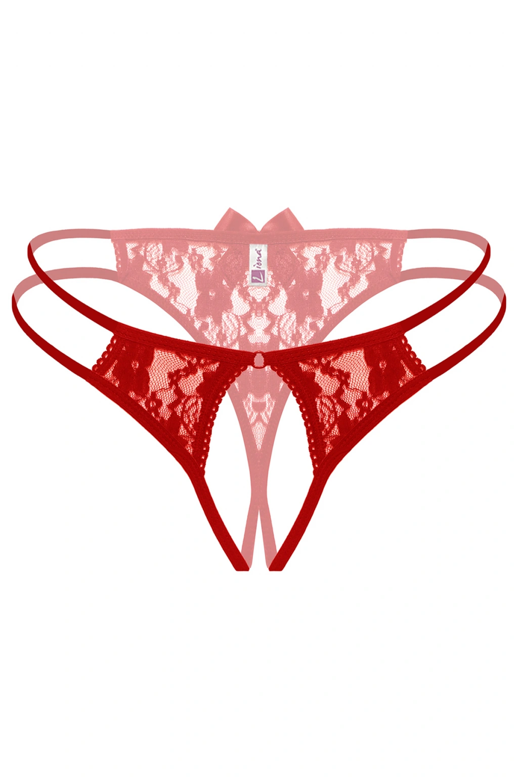 Kırmızı Dantelli Önü Açık Fantezi Külot
