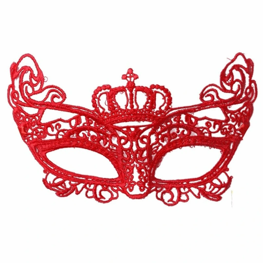 • Kırmızı Renk Dantel Örgü İşlemeli Parti Maskesi Model 2 (4172)