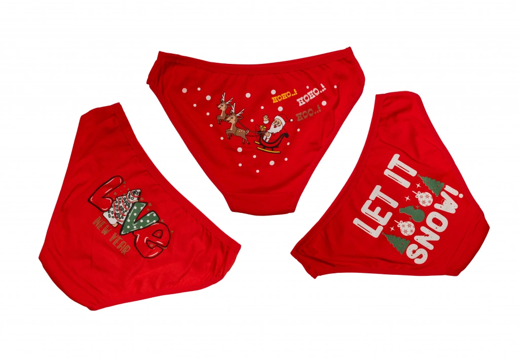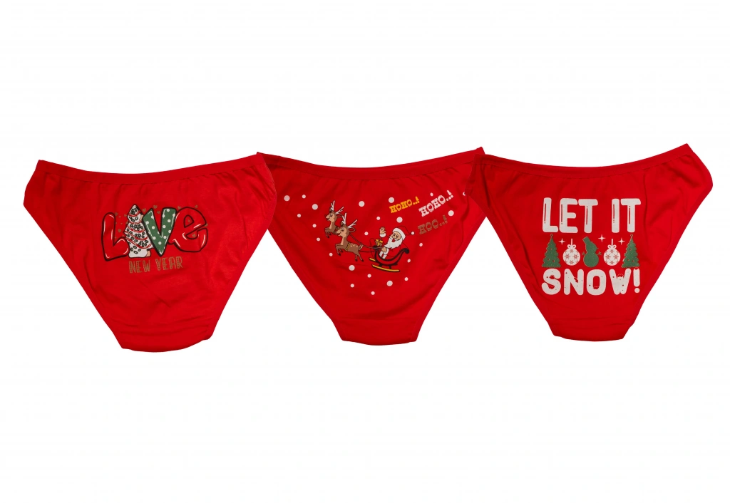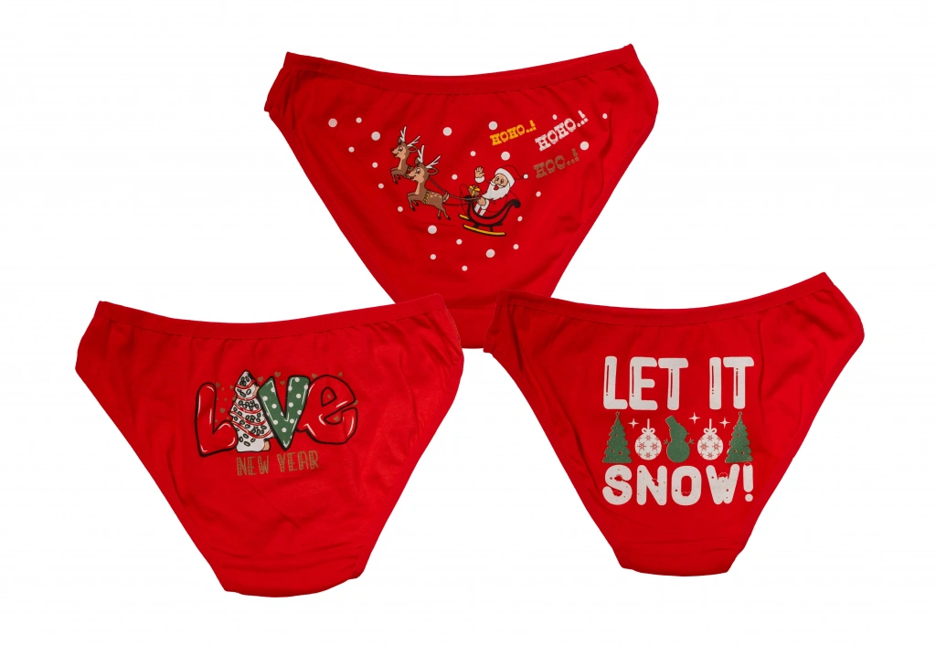 Kırmızı Yılbaşı Desenli 3'lü Pamuklu Külot Takımı