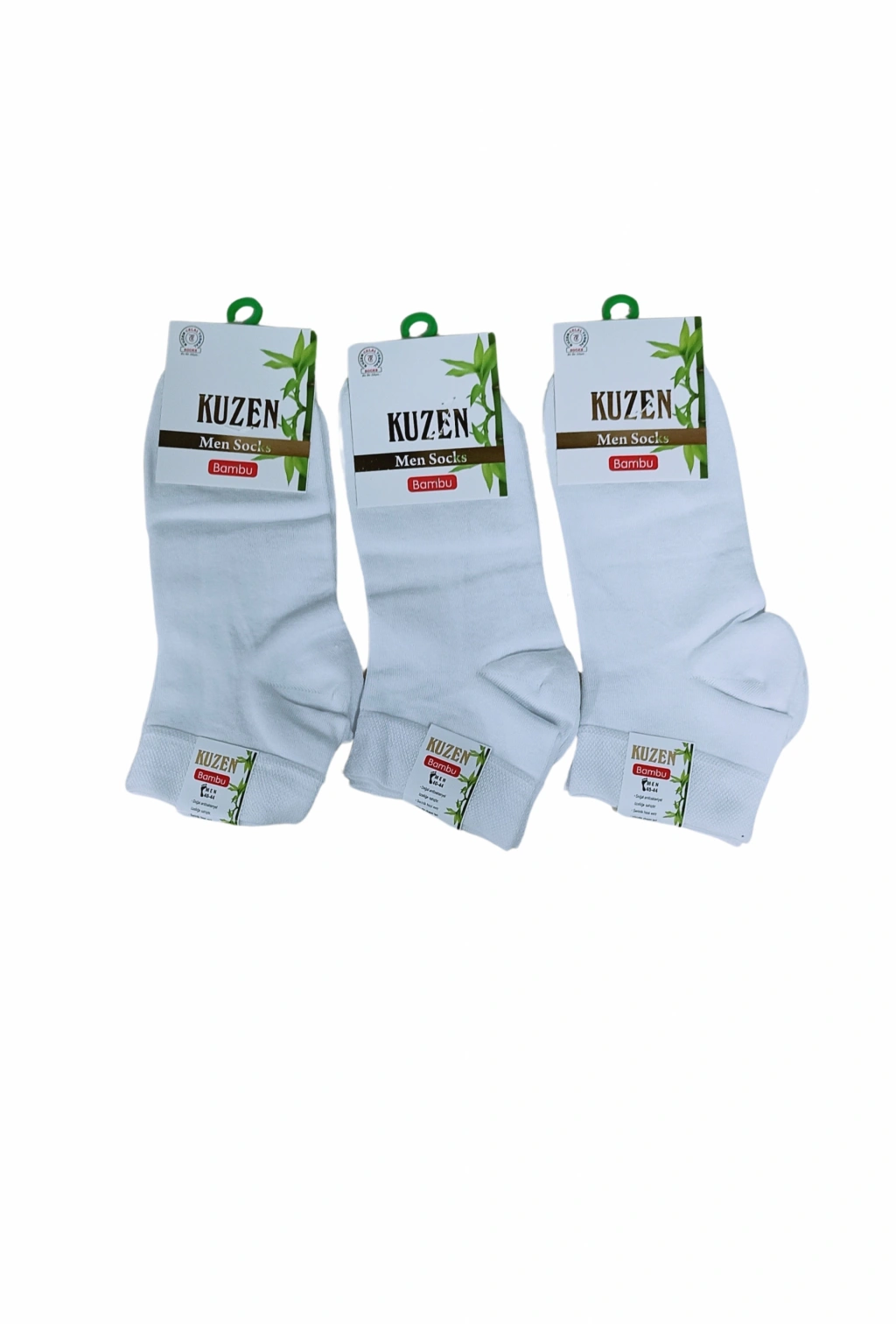 • Kuzen Dikişsiz Yarım Konç Beyaz Bambu Erkek Çorap 12 Adet