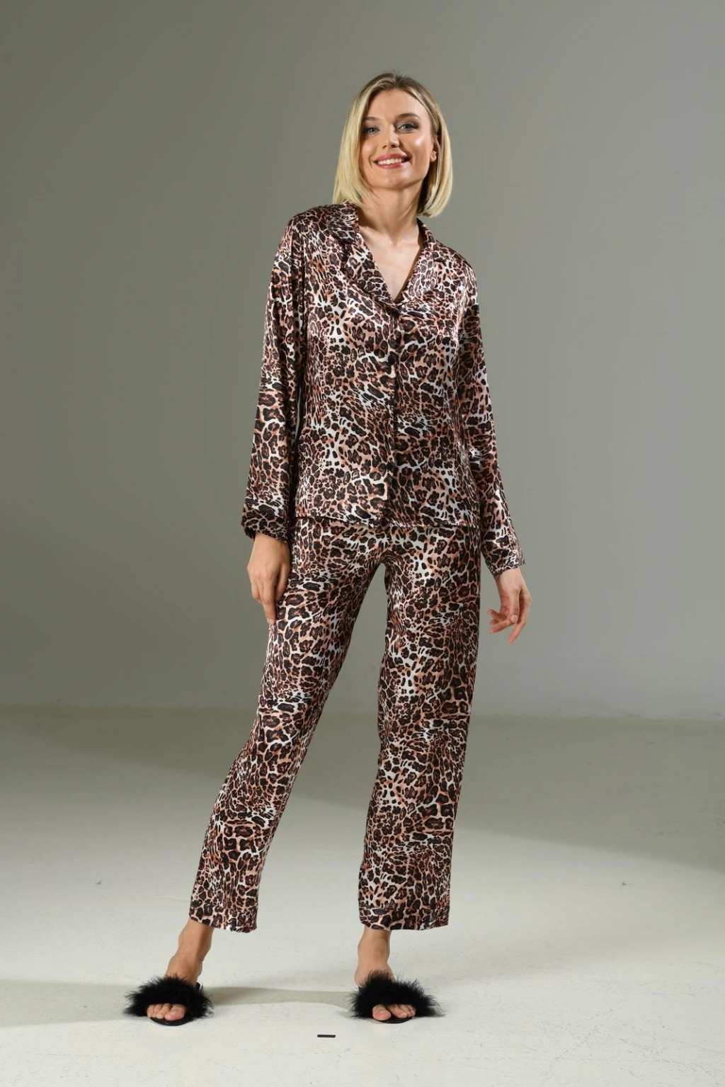 Leopar Desen Yumuşak Dokulu Saten Gecelik Takımı