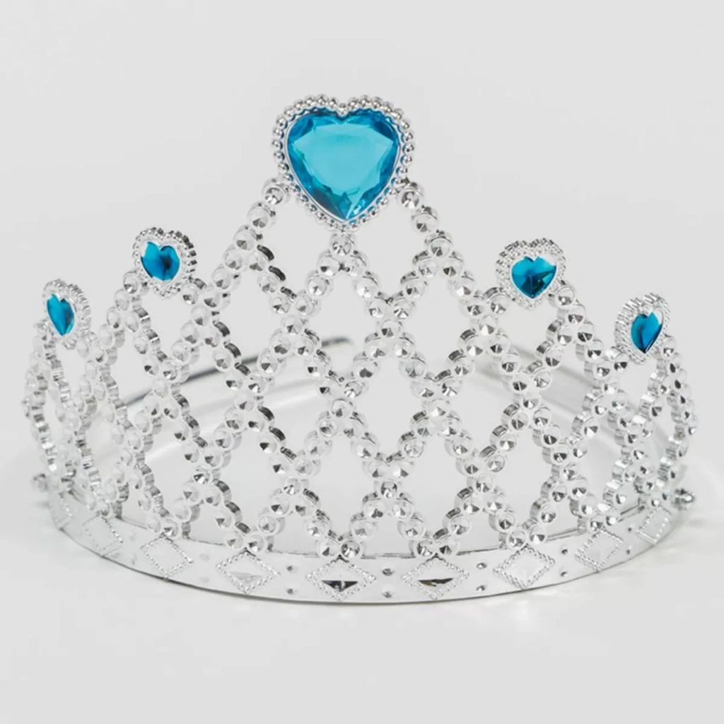 Bu taç, gümüş renginde ve mavi kalp süslemesi ile zarif ve modern bir tasarıma sahiptir. Taçtaki parıldayan taşlar ise masalsı bir atmosfer yaratarak küçük prensesinizin göz kamaştırmasını sağlayacaktır.