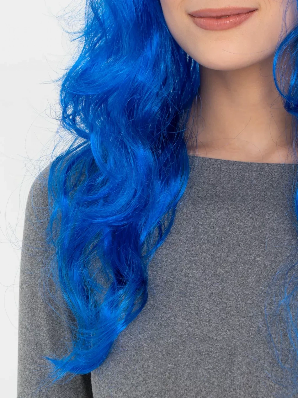 Mavi Renk Uzun Dalgalı Parti Peruğu (4172)