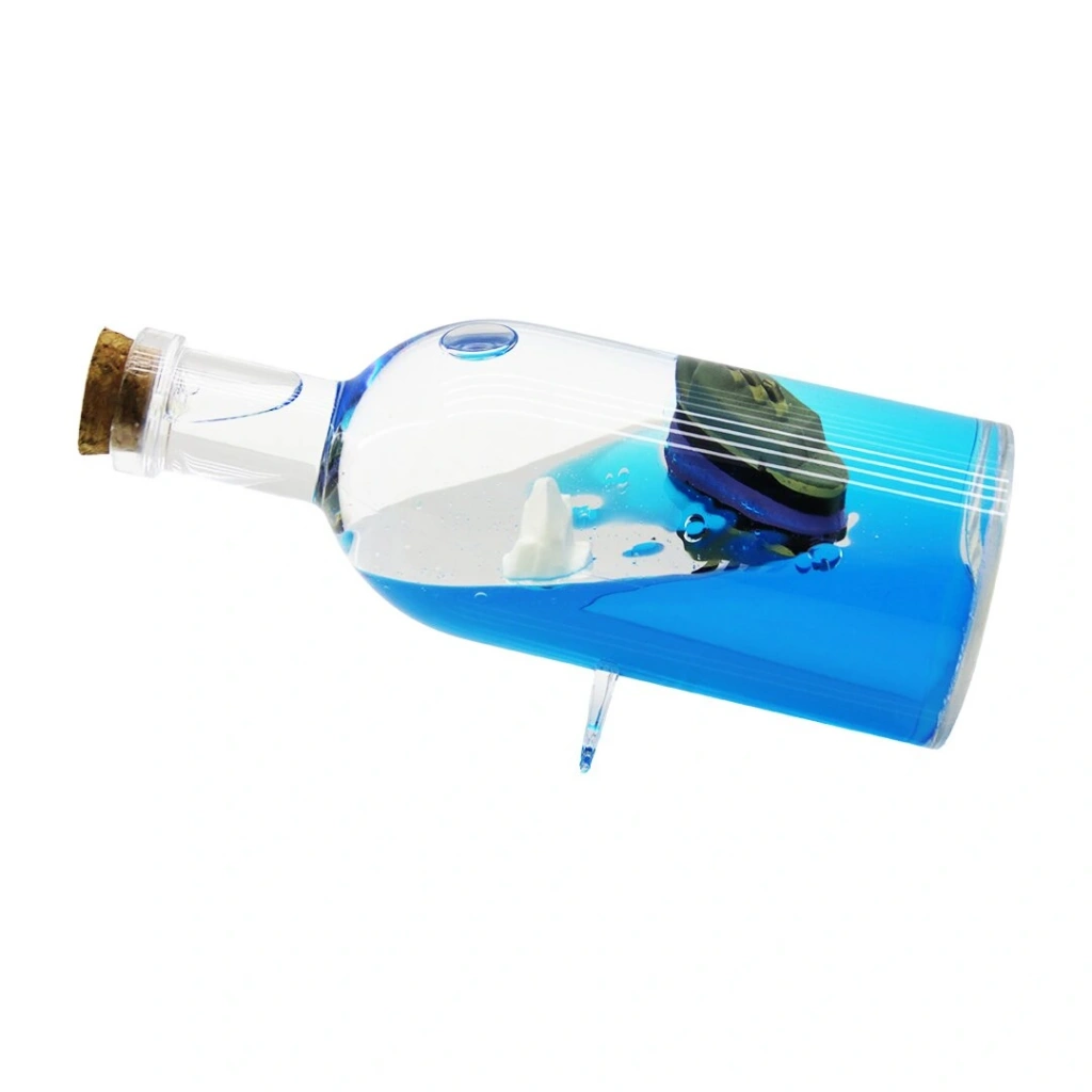 Mavi Su - Adalı Yuvarlak Mika Şişe=yan Duruş Ayaklı Yüzen Batmayan Gemi Dekoratif Biblo Akvaryum 6x16cm (4172)