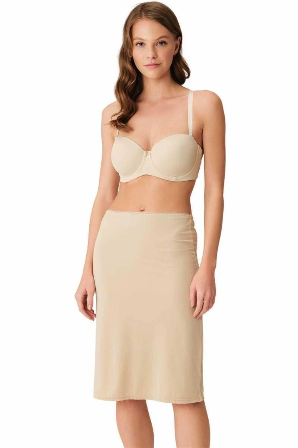 Diz altı uzunluğu ile ekstra kapatıcılık sağlayan bu jüpon, günlük kombinlerden özel günlere kadar etek ve elbise altı kullanım için ideal bir tamamlayıcıdır.