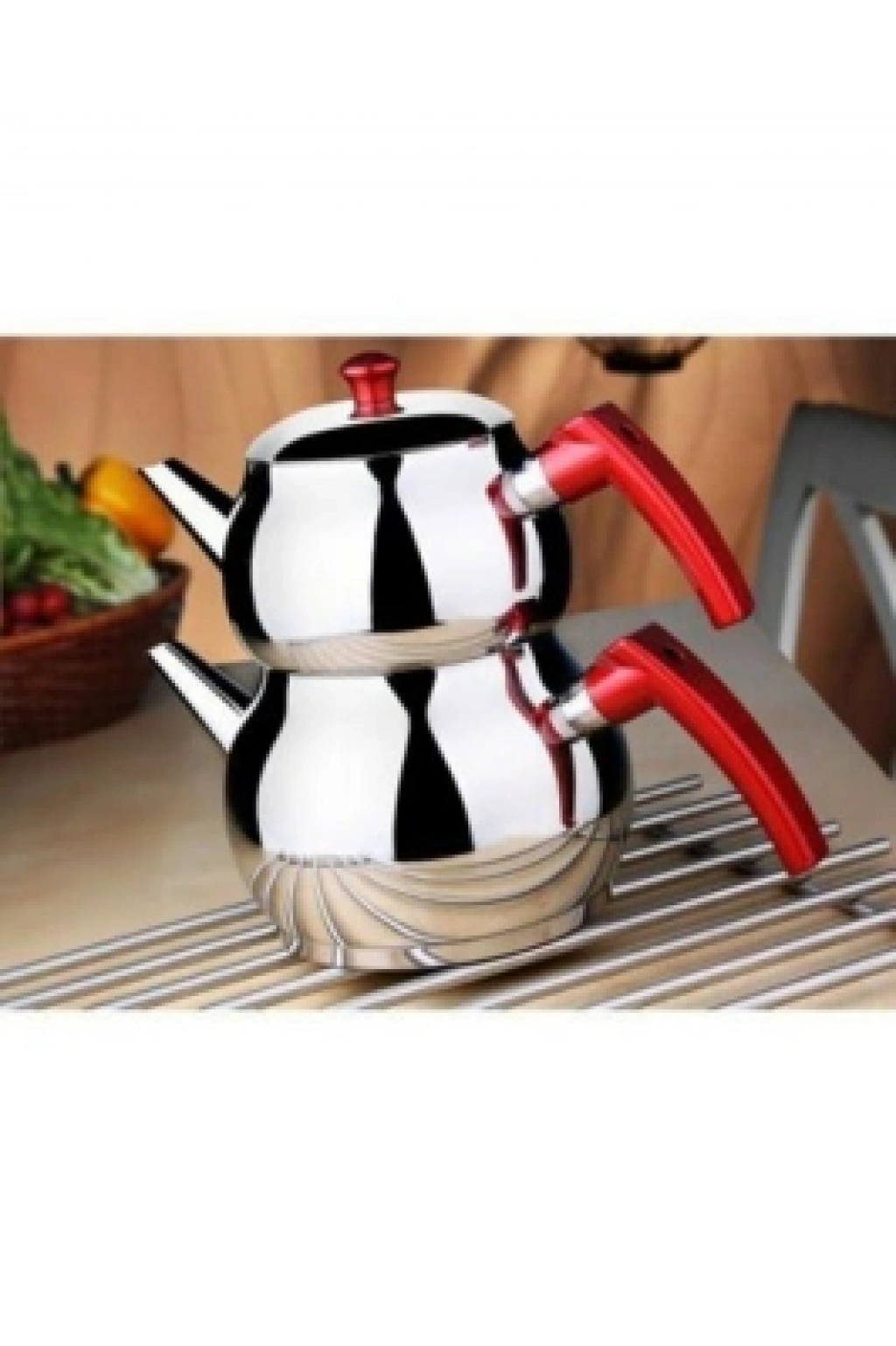 Filinta Mini Boy Çelik Çaydanlık Seti Çift Kapaklı Renkli Bakalit Kulp Üst Demlik: 1lt - Alt Suluk: 1.5lt Kendinden Süzgeçli (4172)