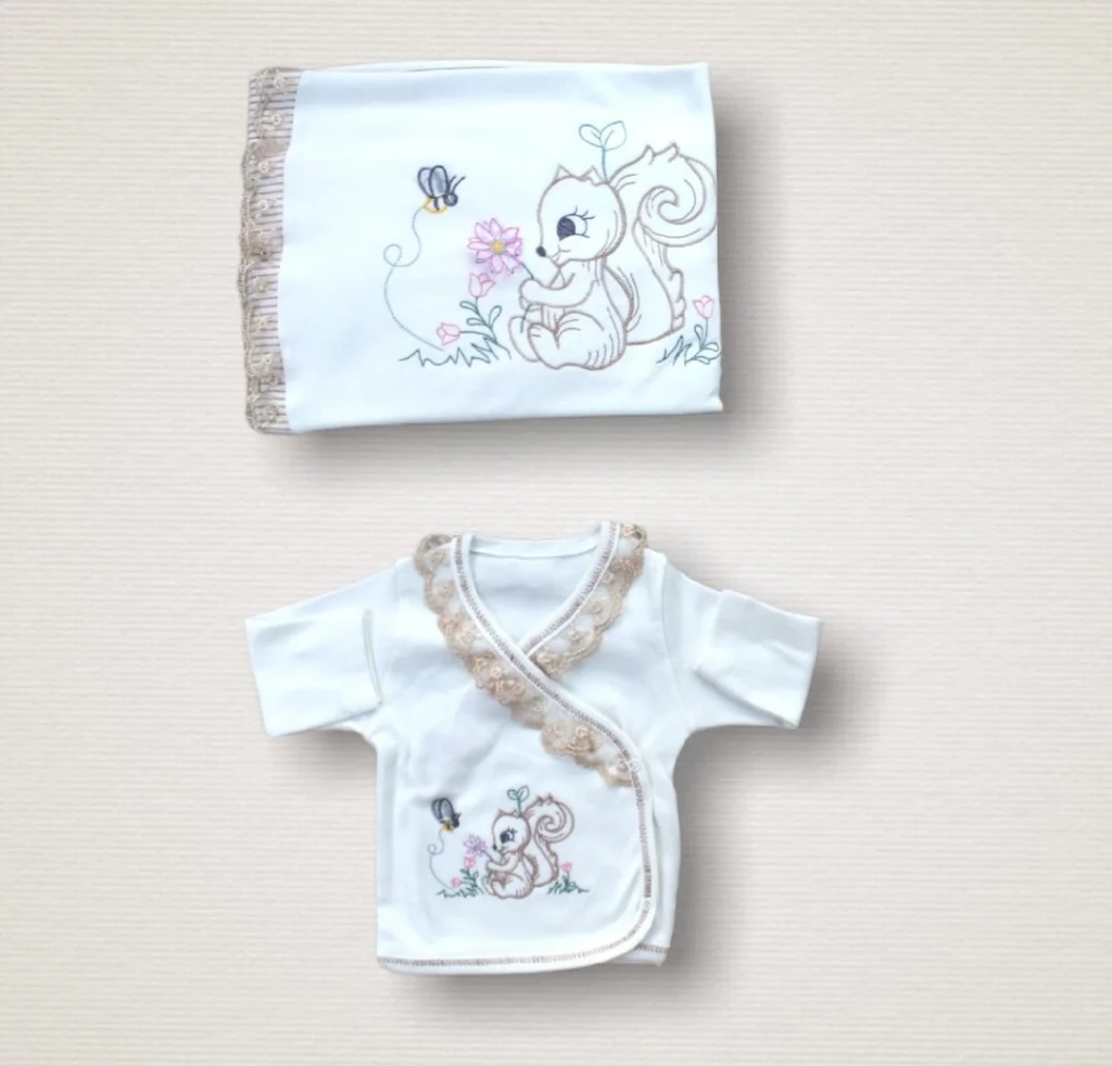 Minik Sincap Nakışlı 10lu Zıbın Takımı Hastane Çıkışı Ekru