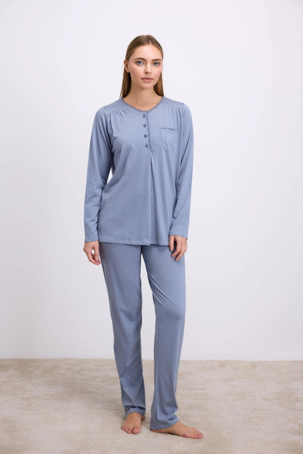 Modal Pamuklu Uzun Kollu Düğmeli 2'li Pijama Takımı