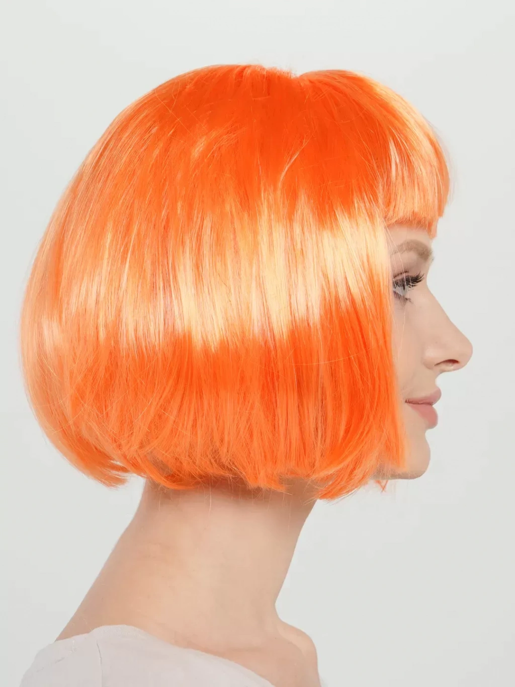 • Neon Turuncu Renk Açık Turuncu Küt Parti Peruğu Kısa Takma Saç (4172)