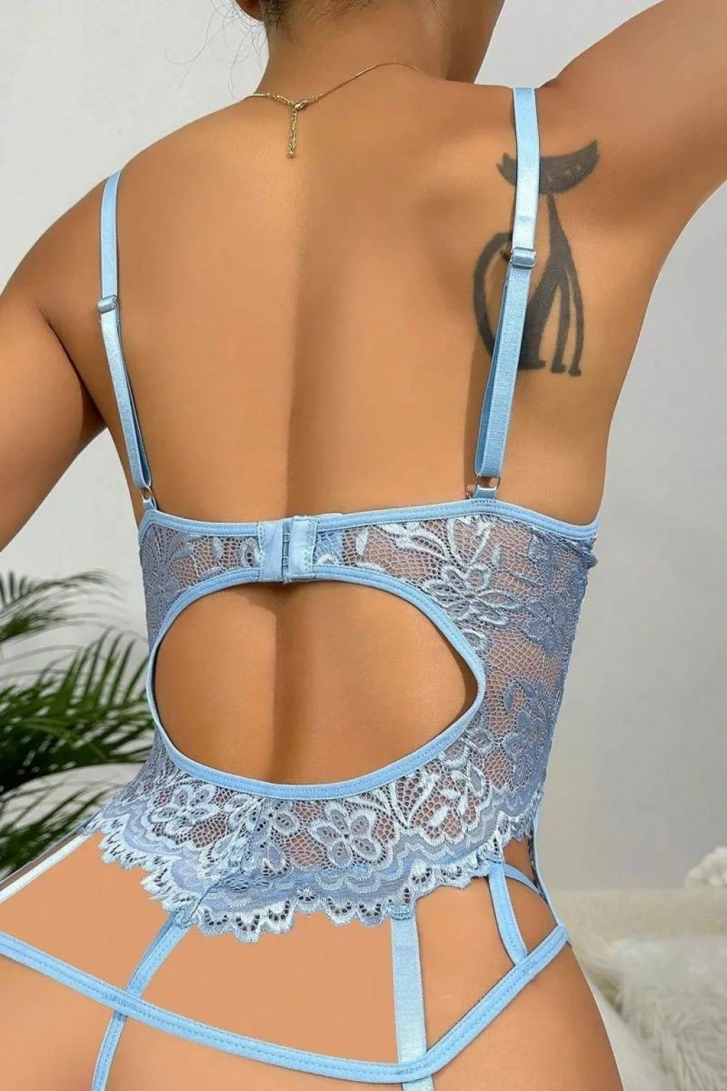 Mavi Dantelli Göğüs İp Detaylı Fantezi Jartiyer Takımı