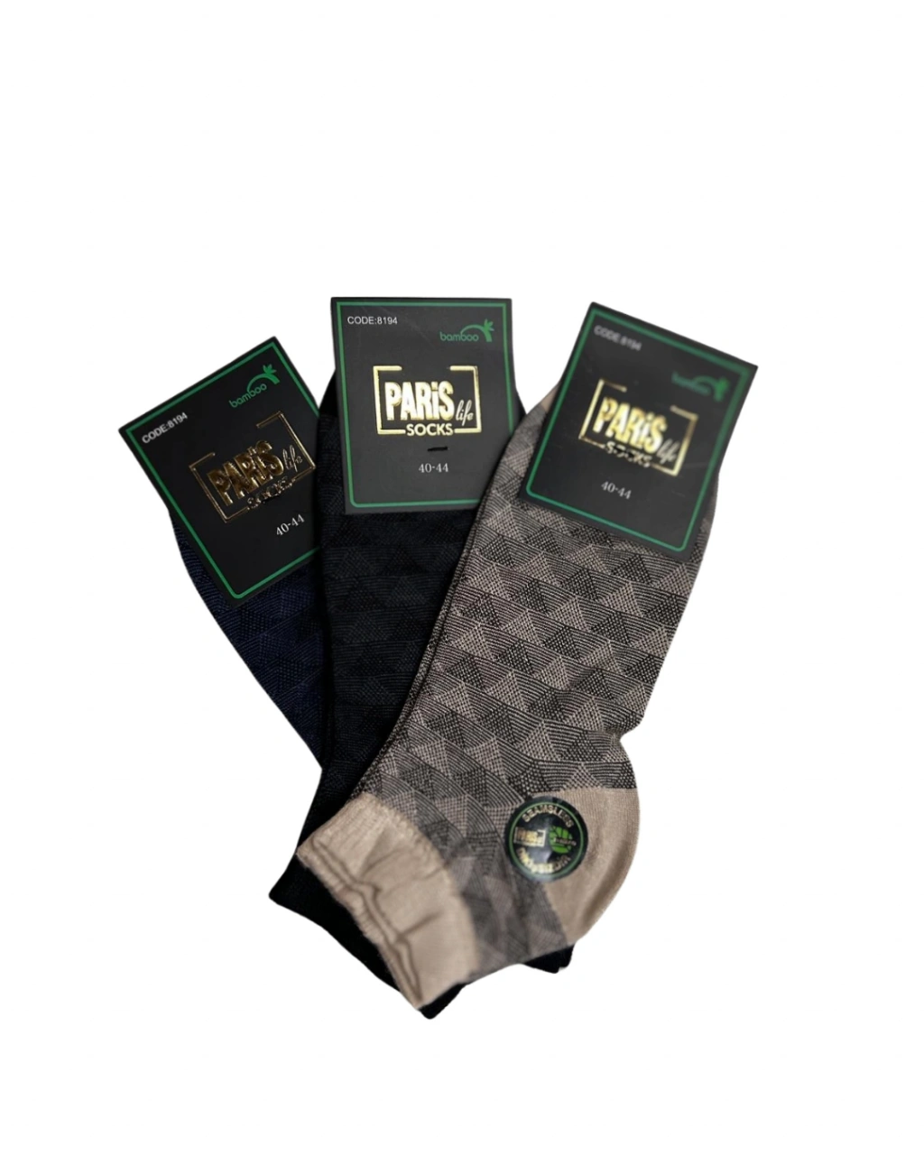 Paris markasının bambu desenli kısa konçlu erkek patik çorabı, şıklığı ve konforu bir arada sunuyor. Bu ürün, günlük kullanım için idealdir ve aynı zamanda spor aktiviteleri için de uygundur. İnce ve hafif yapısıyla ayakları sıkmadan rahatça giyilebilir.
