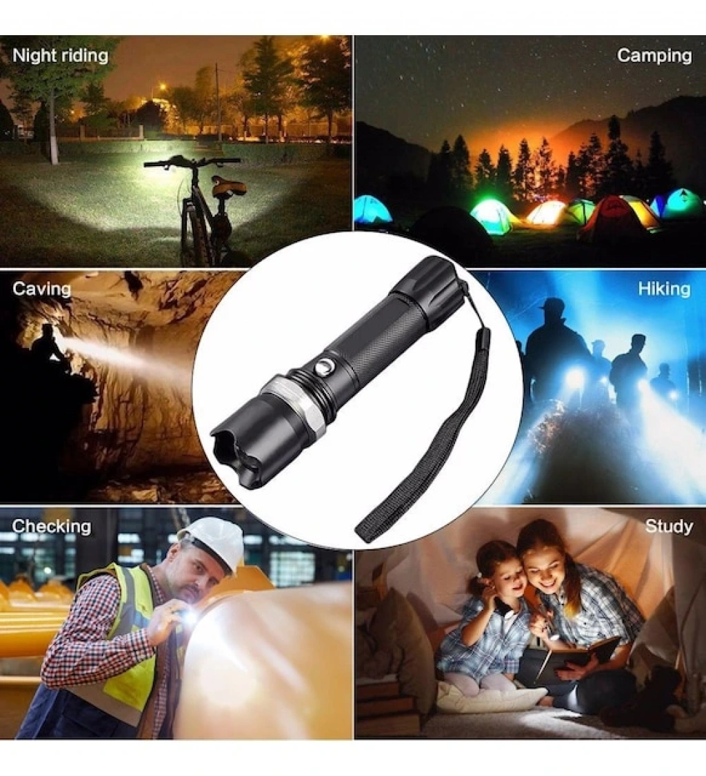 Profesyonel Şarjlı El Feneri Ledli, Flashlight, Zoom Özellikli, 6 Parça Full Set