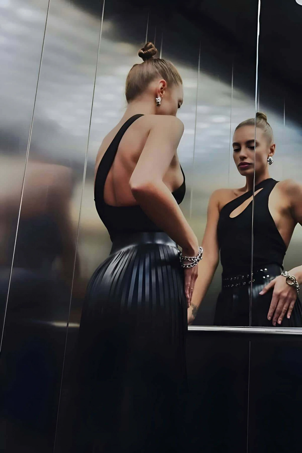 • Püsküllü Deri Etek, Şık Deri Etek, Uzun Deri Etek, Siyah Deri Etek - Brf637