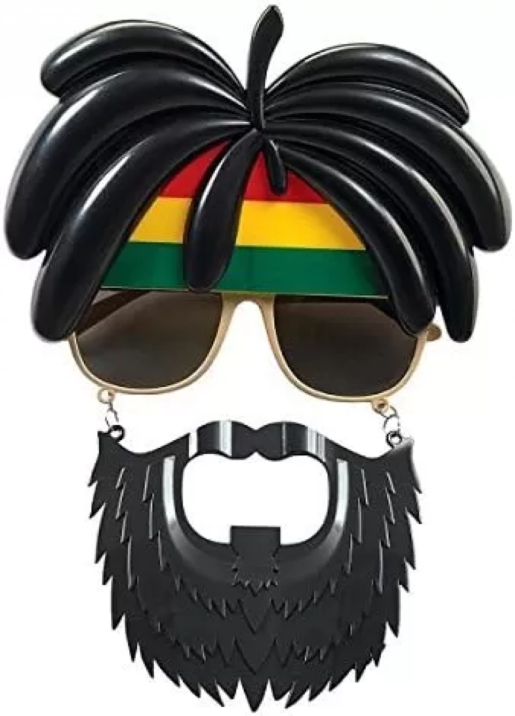 Rasta peruklu, rasta sakallı ve bıyıklı parti gözlüğü ile eğlenceye renk katın! 27x18 cm boyutuyla her kafaya uyum sağlayan bu gözlük, partiler, festivaller ve kostüm partileri için idealdir.
