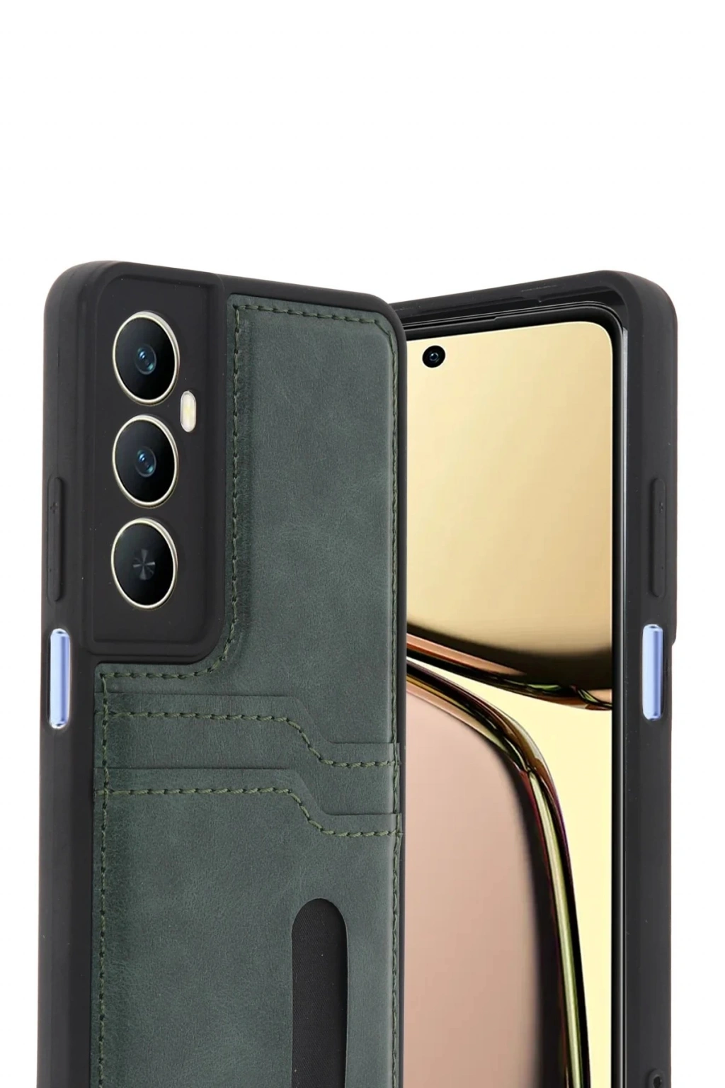 Realme C65 Sara Kartvizitli Deri Kılıf - Yeşil