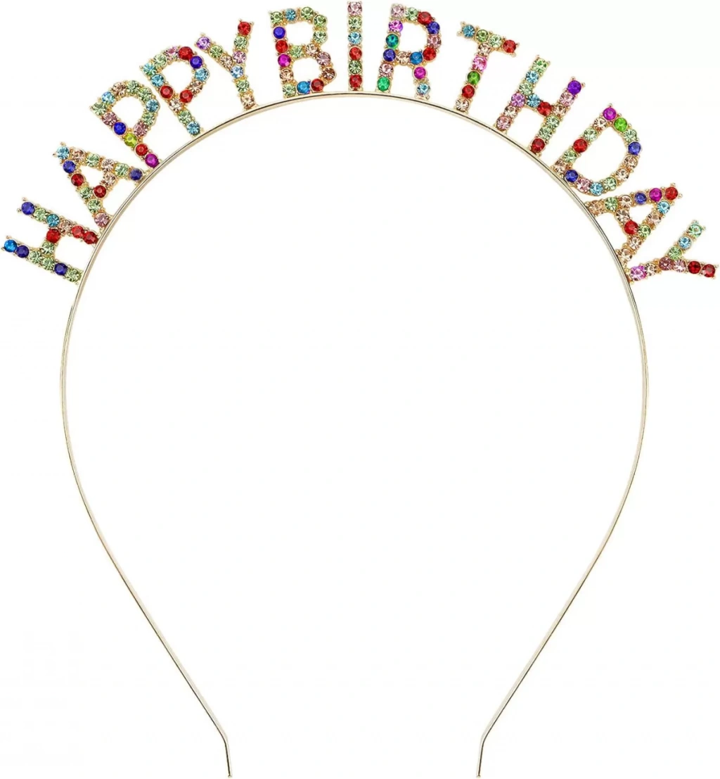 Doğum gününüzde göz kamaştırmak ve bir prenses gibi hissetmek ister misiniz? Rengarenk Kristal Taşlı Ekstra Lüks Gümüş Happy Birthday Taç tam size göre!