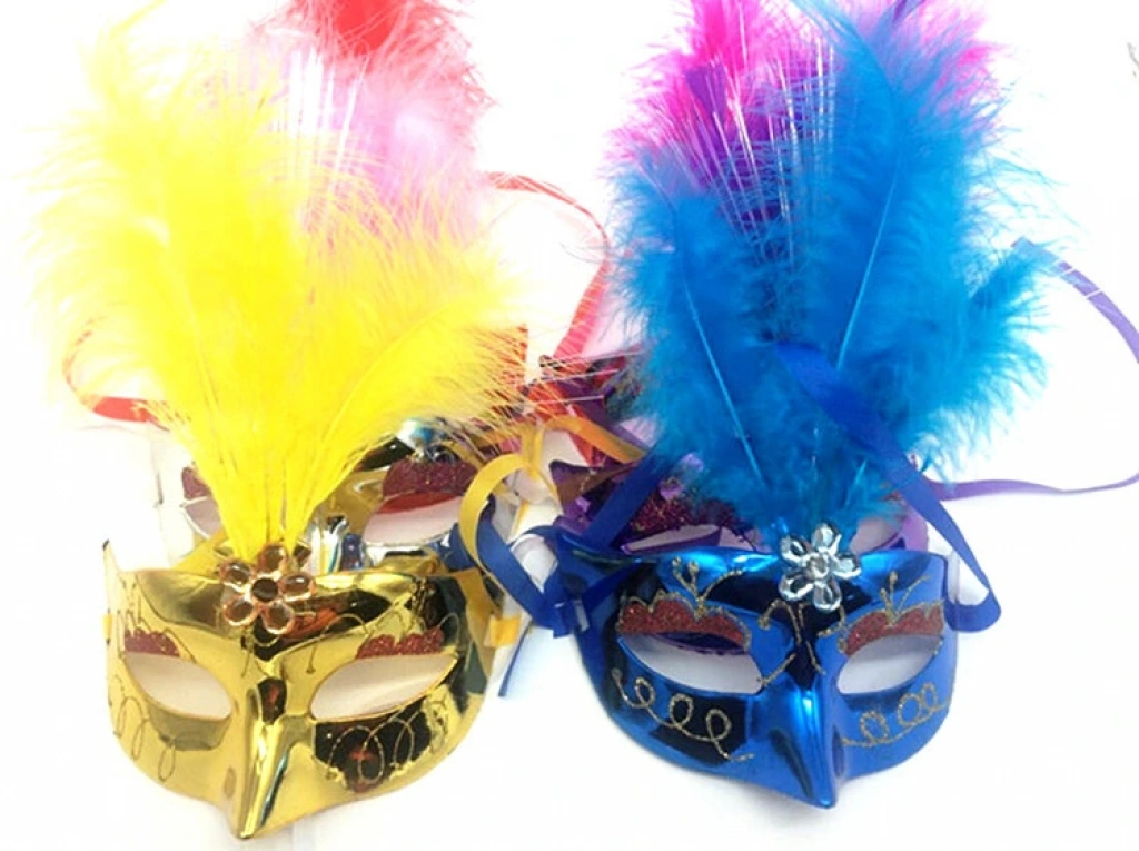 Renkli Tüylü Venedik Parti Maskesi Karışık Renk 12 Adet (4172)