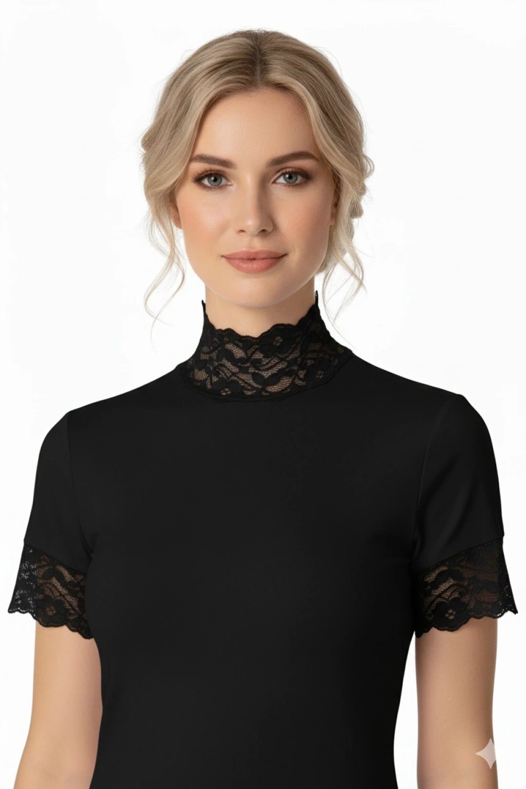Bayan Kısa Kol Dantelli Elastane 8015