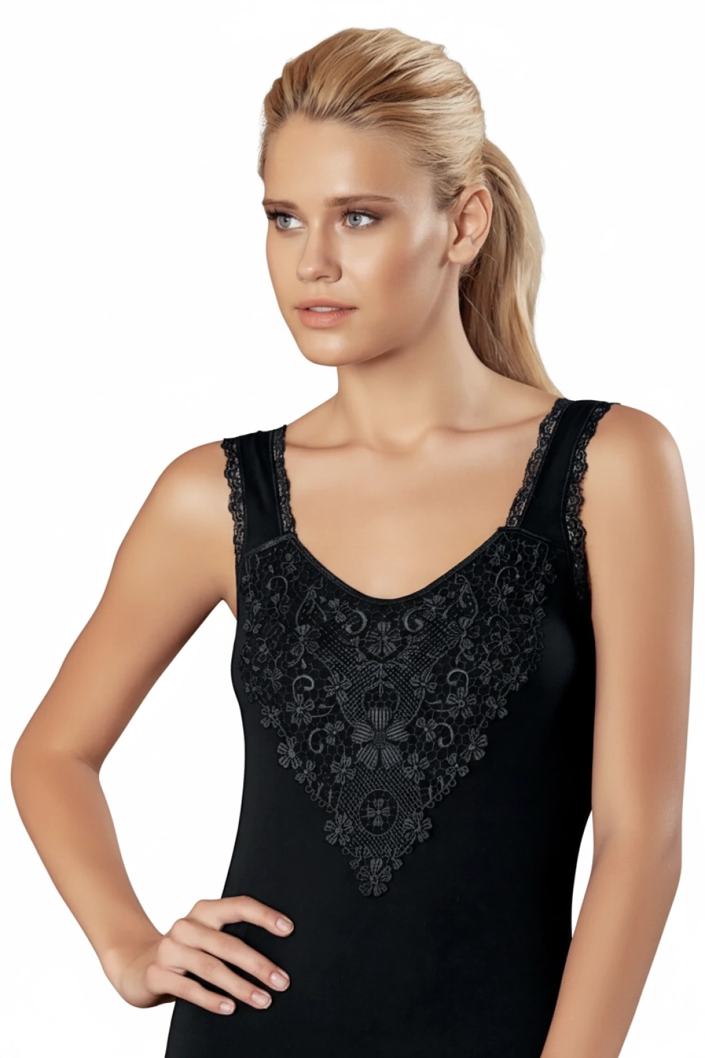 Yakası Ve Askıları Güpürlü Atlet B162