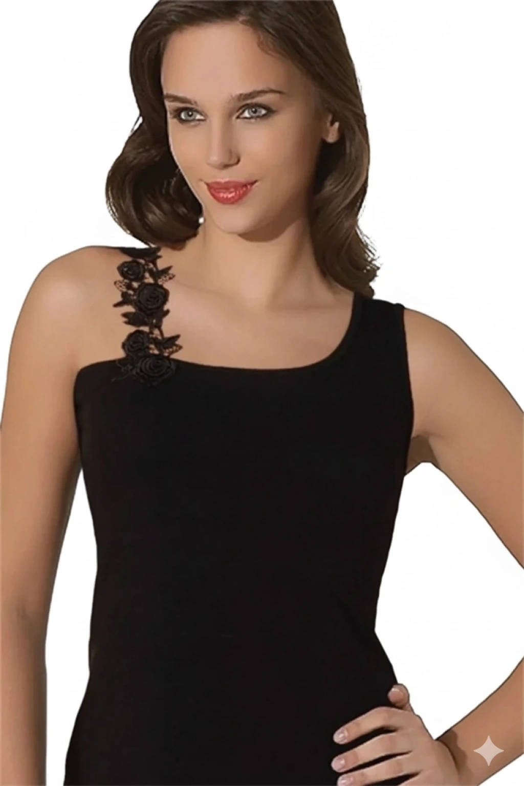 Şahinler Kalın Askılı Dantelli Siyah Atlet