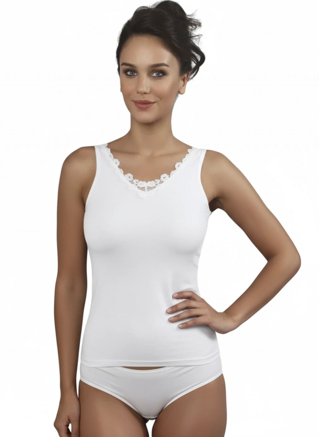Kadın Beyaz Normal Kalıp Dantel Detalı Ince Askılı Oyuk Yaka Atlet