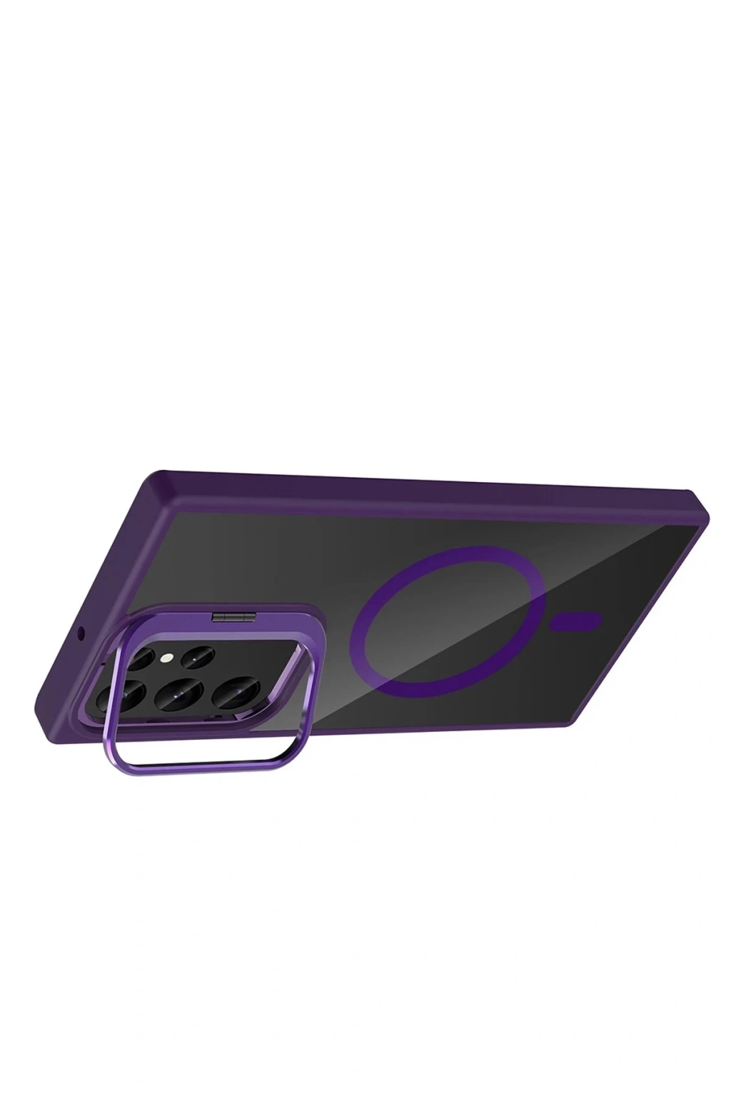 Samsung Galaxy S24 Ultra Remim Lensli Magsafe Standlı Kapak - Derin Mor