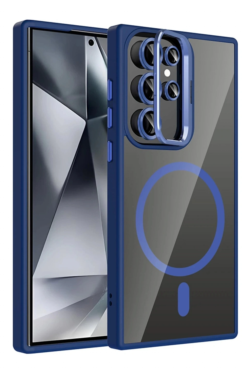 Samsung Galaxy S24 Ultra Remim Lensli Magsafe Standlı Kapak - Lacivert